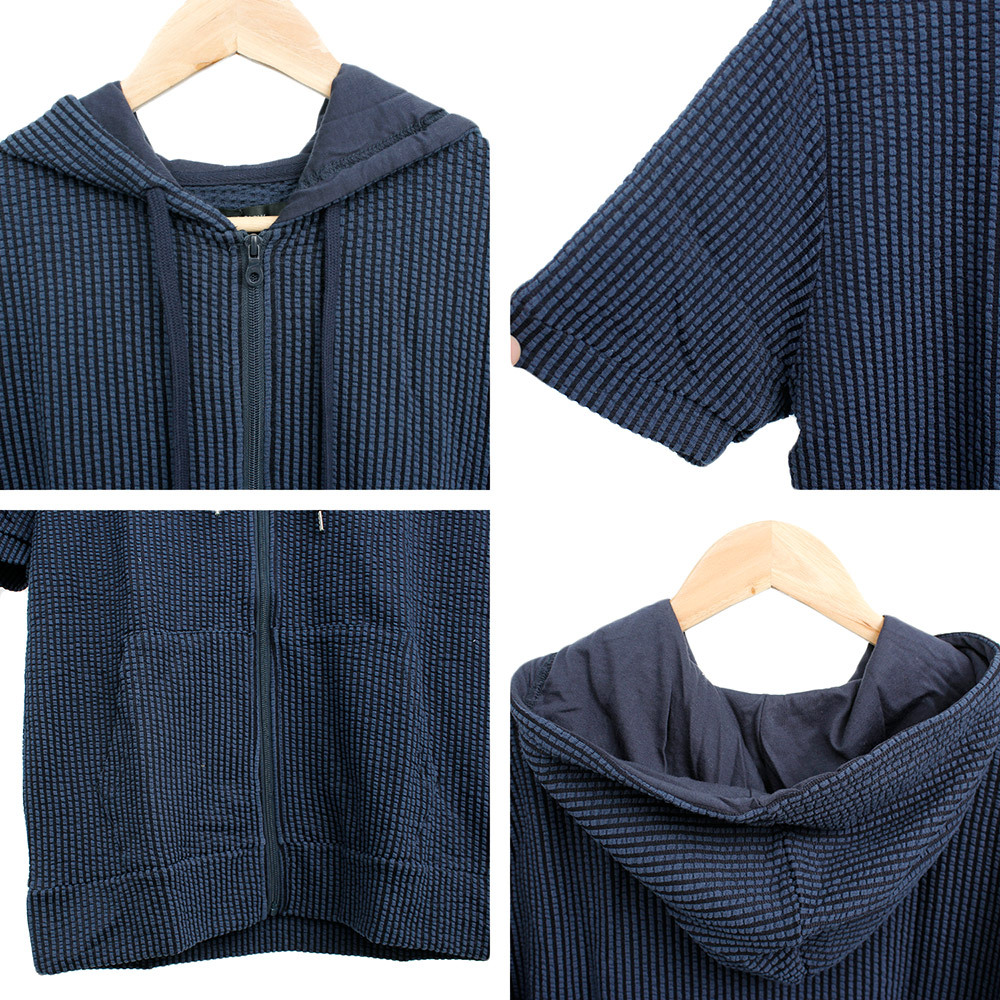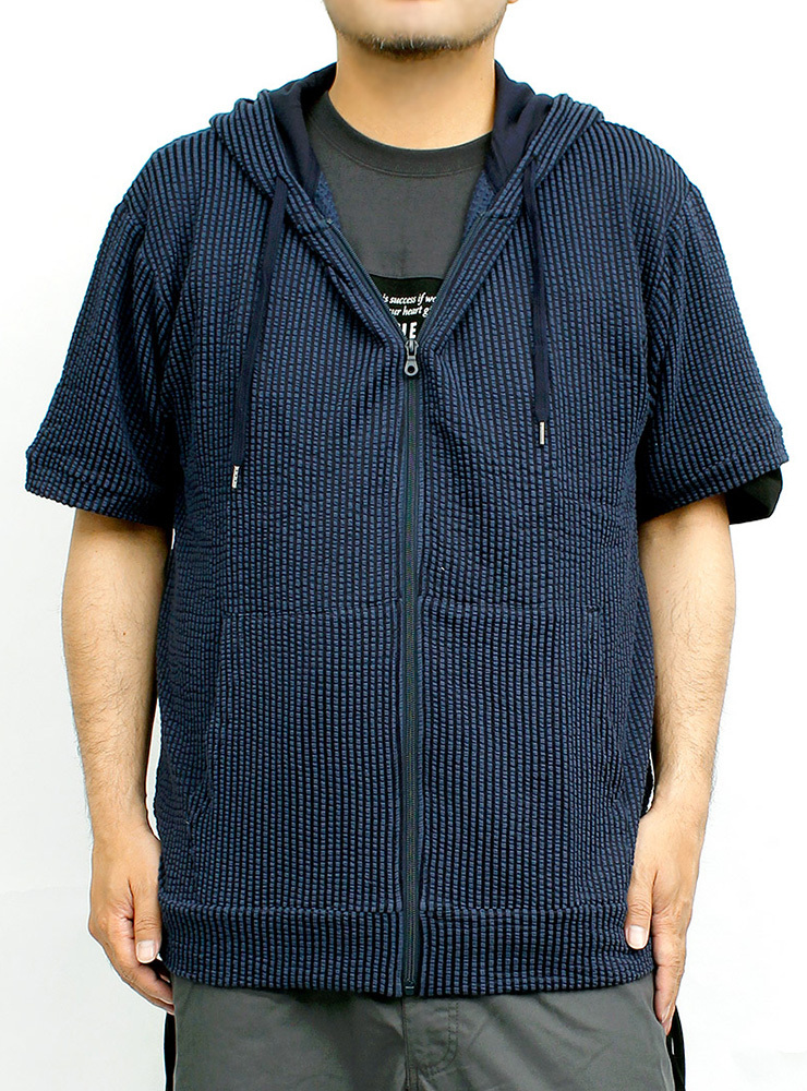 | 商品名 | 【新品】 2L ネイビー 半袖 パーカー メンズ 大きいサイズ ジップアップ シアサッカー ストレッチ サマージャケット |
