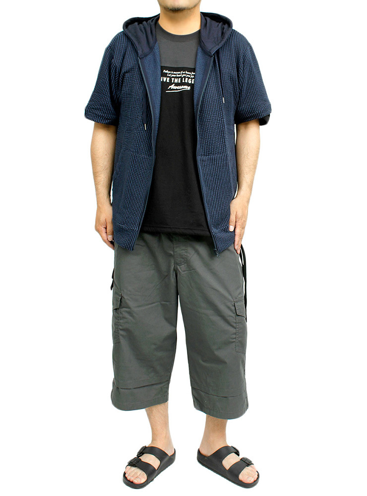 | 商品説明 | 軽くて通気性が良い表面の凹凸が特徴のシアサッカー素材を落とし込んだ半袖ジップアップパーカー。 |
