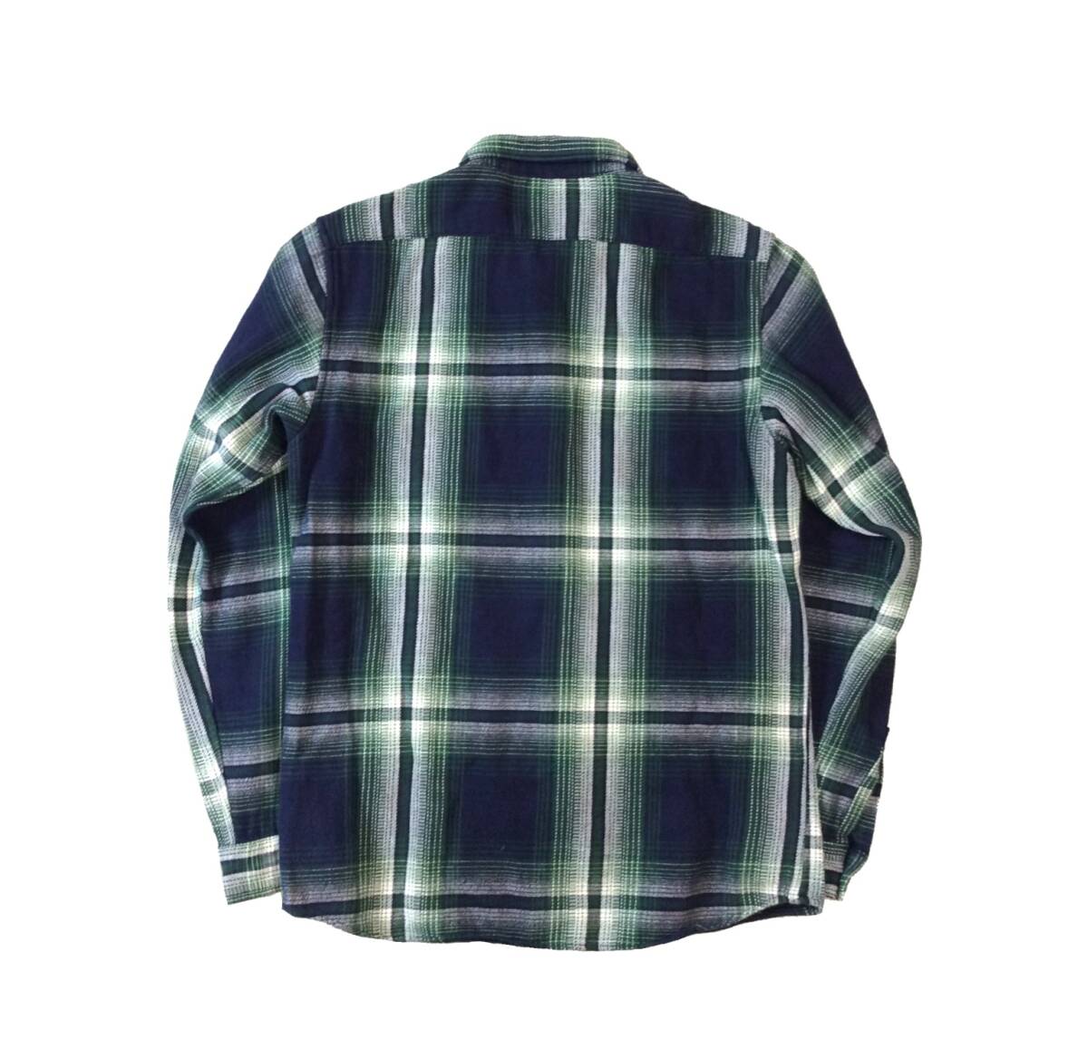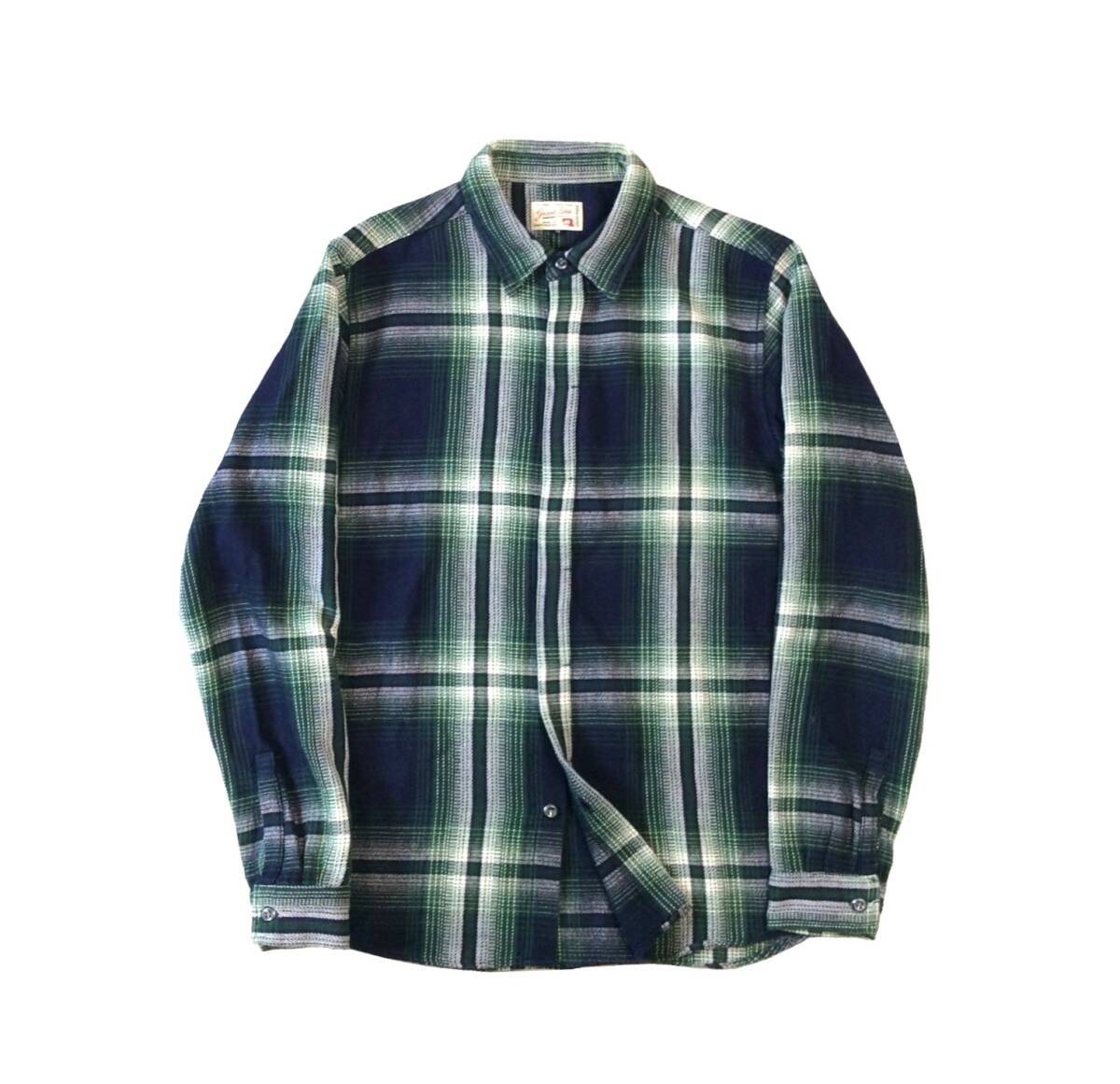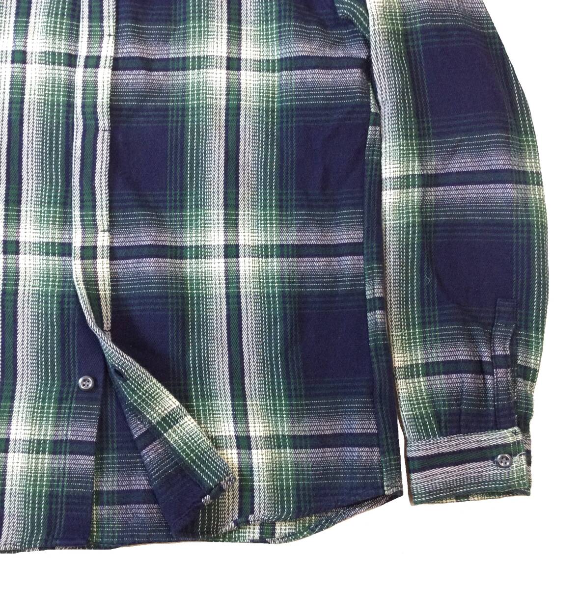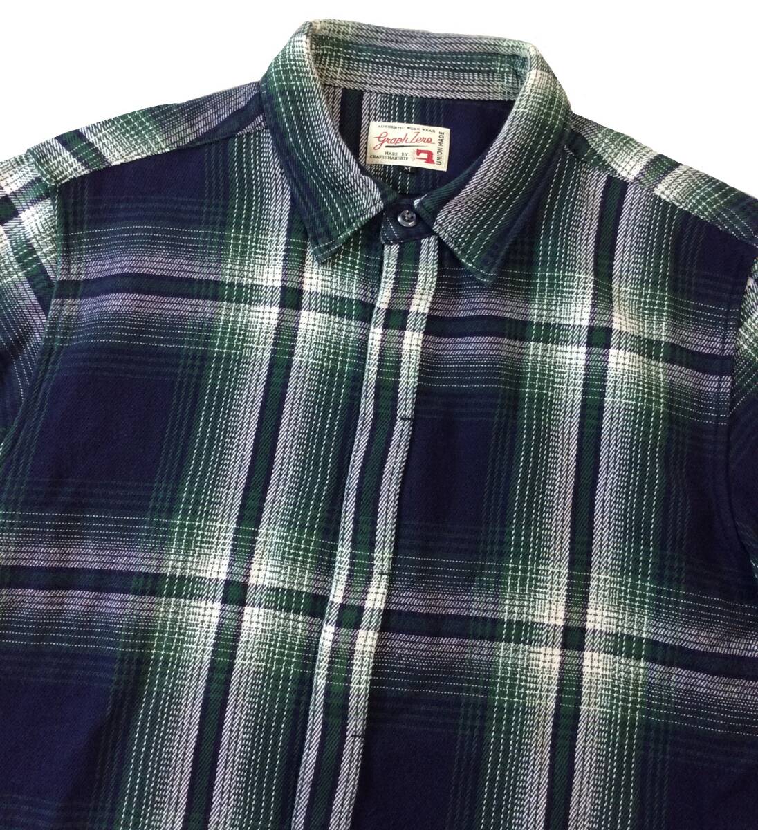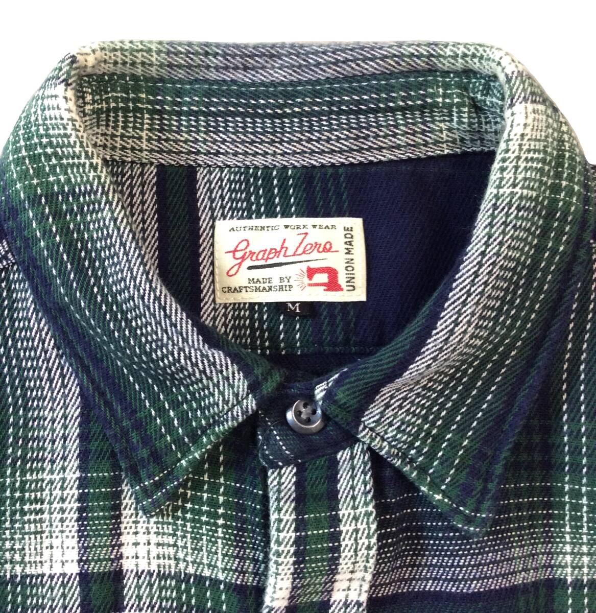 Graph Zero グラフゼロ チェック ネルシャツ 隠しボタン 長袖 シャツ グリーン/ネイビー メンズ M