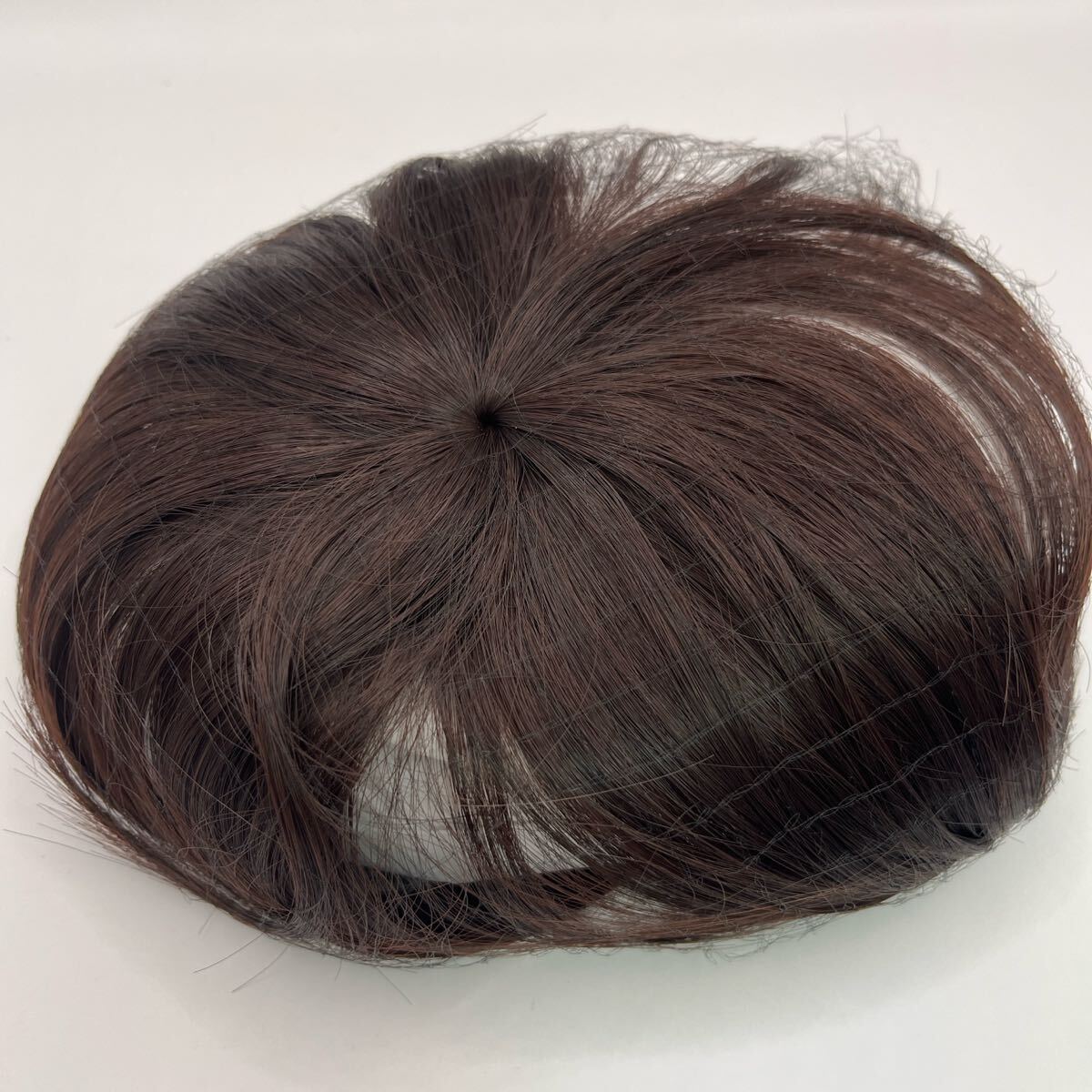 自然なボリューム感を演出するブラックブラウンの頭頂部ウィッグ。