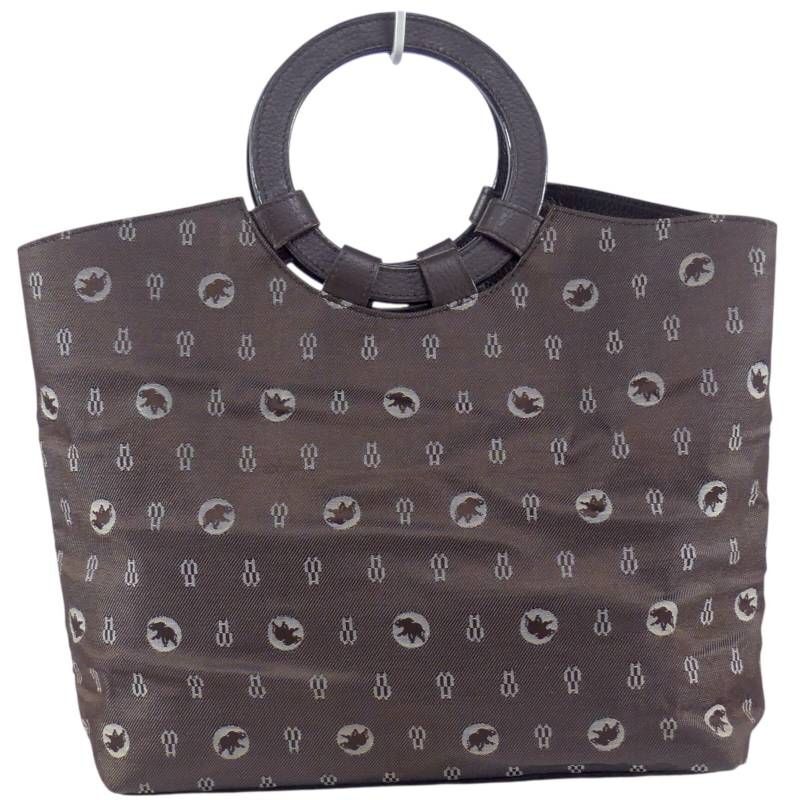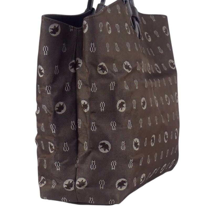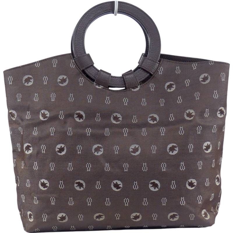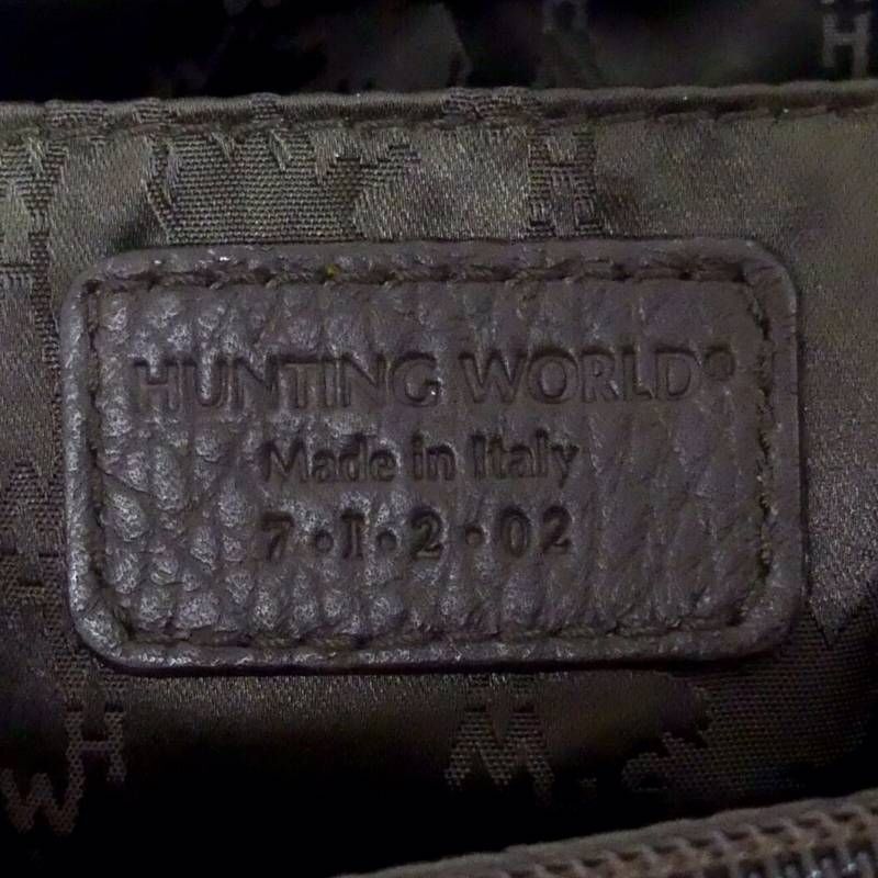 即決★HUNTING WORLD★ トートバッグ ハンティングワールド イタリア製 レザーコンビ 茶 総柄 本革 ハンドバッグ 本皮 旅行 カバン 出張 鞄