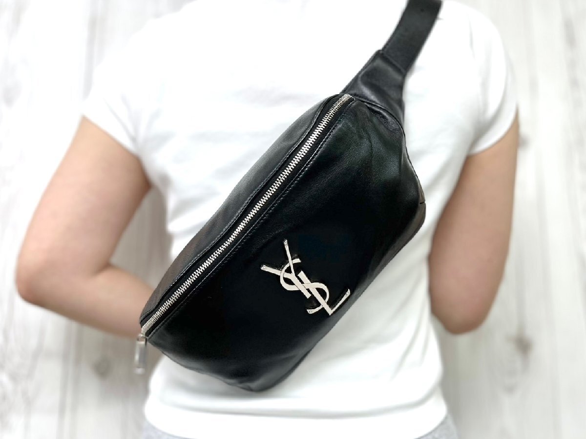 | 極美品 SAINT LAURENT PARIS サンローラン パリ YSL カサンドラ ボディバッグ ウエストポーチ バッグ ナッパレザー 黒 メンズ 89960Y | ||