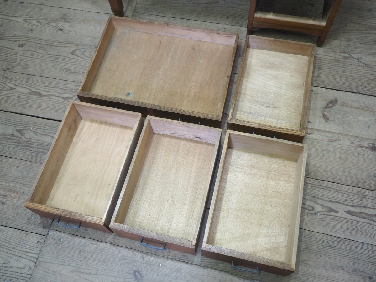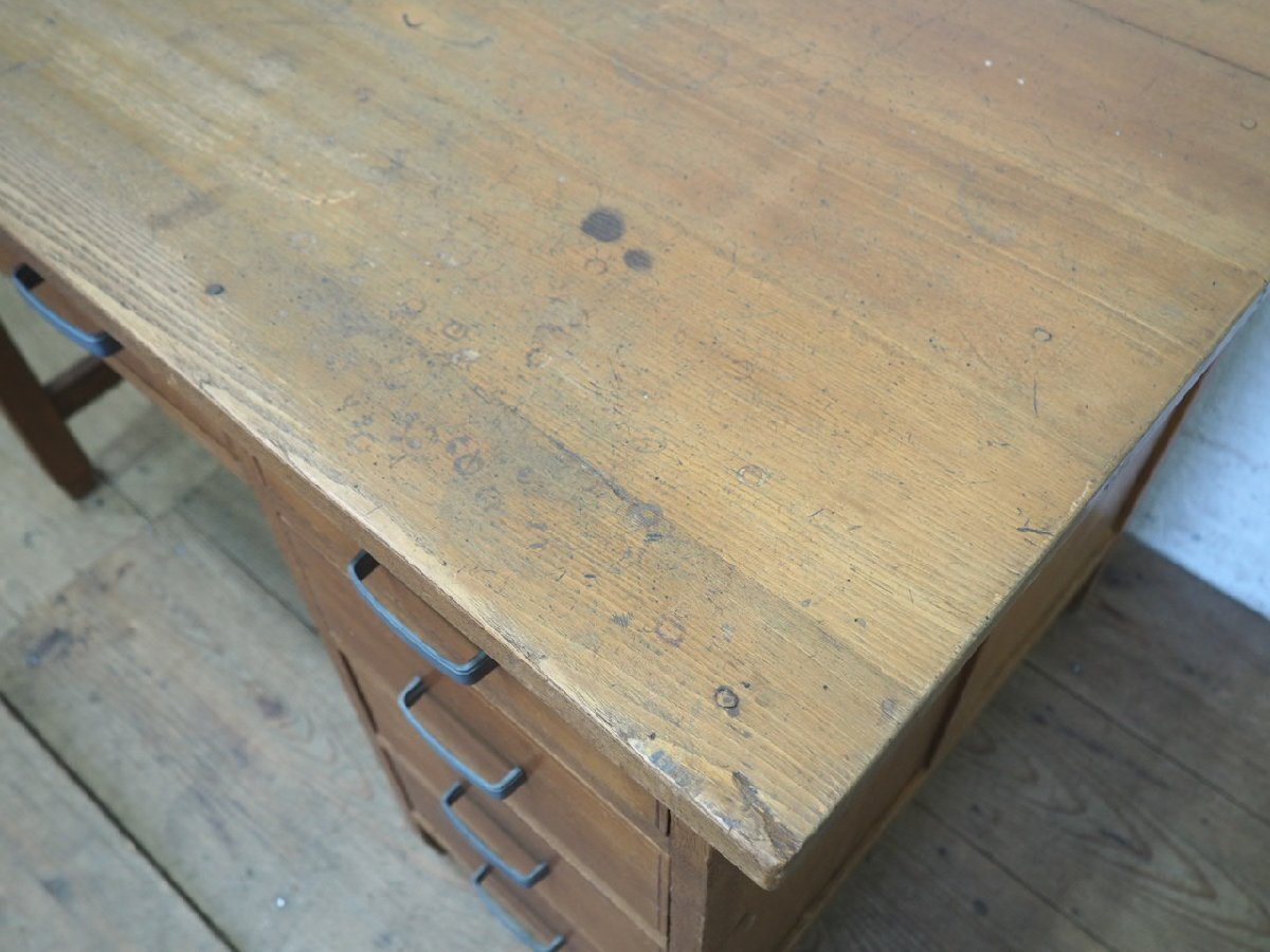 経年の傷や欠け、天板や引き出しに反り、染み等がありますが、