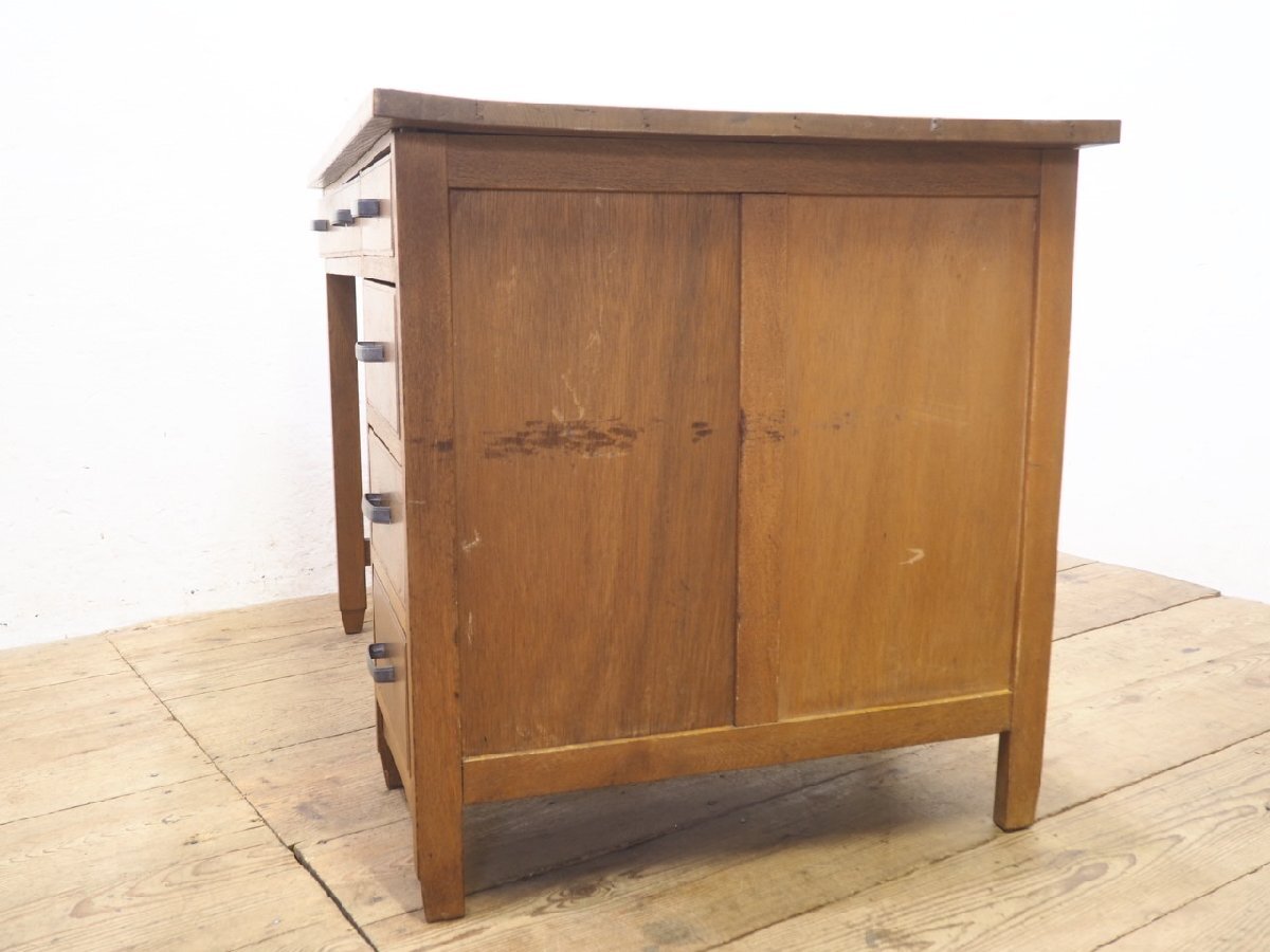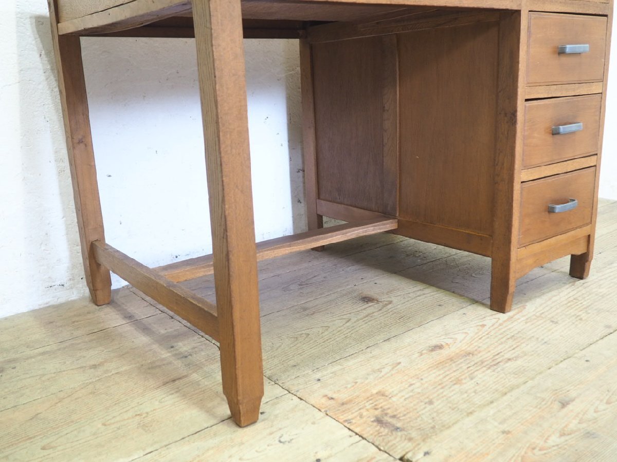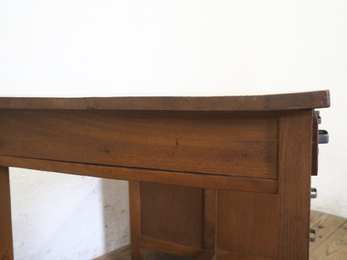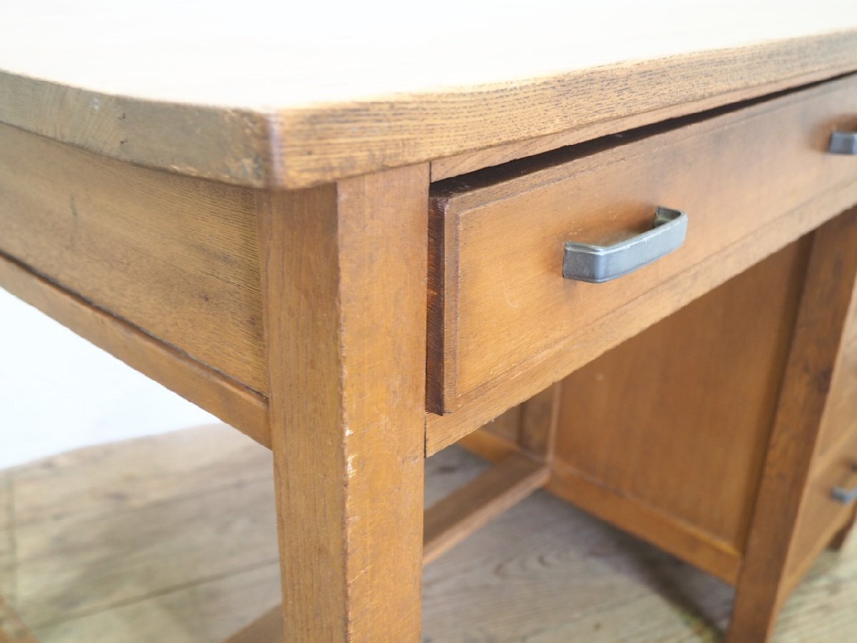 タ荷H0411◆天板W106cm×D71cm◆ナラ材のレトロな古い木製片袖机◆楢 学習机 収納棚 飾り棚 展示台 デスク テーブル ビンテージQ(ヤD)松