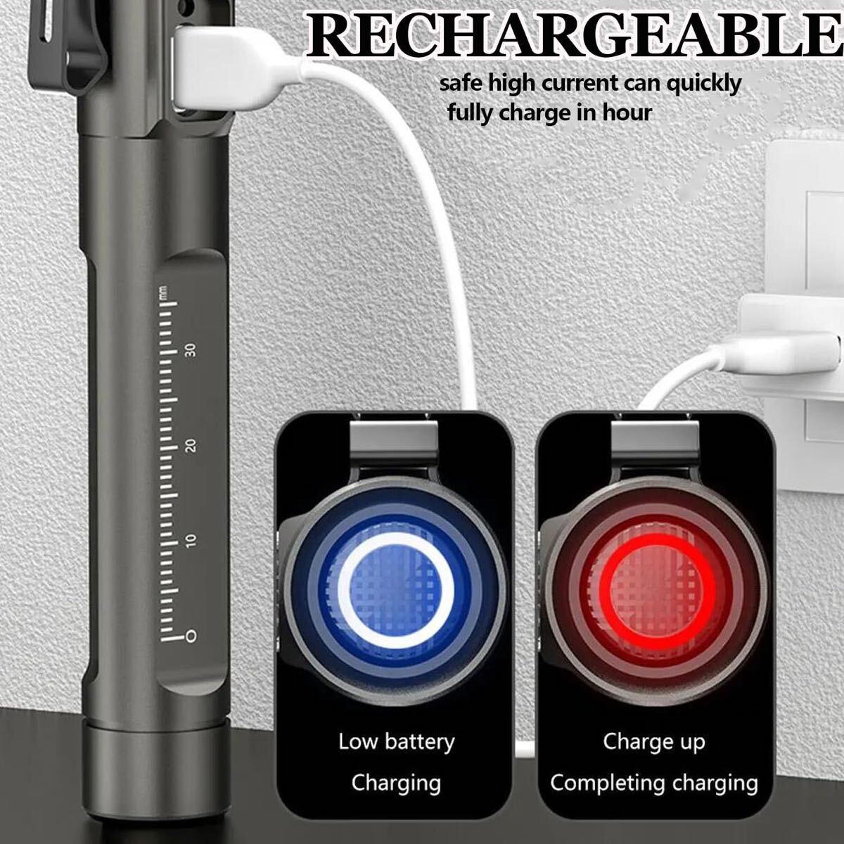 【USB C充電式&メモリ機能】小型懐中電灯は付属のUSB Type-Cケーブルで充電され、USBポートから完全に充電するのに2.5時間かかります。 フル充電時、低電力モードで最大10時間持続します。 メモリ機能により、最後の動作モードの状態を自動復元します。