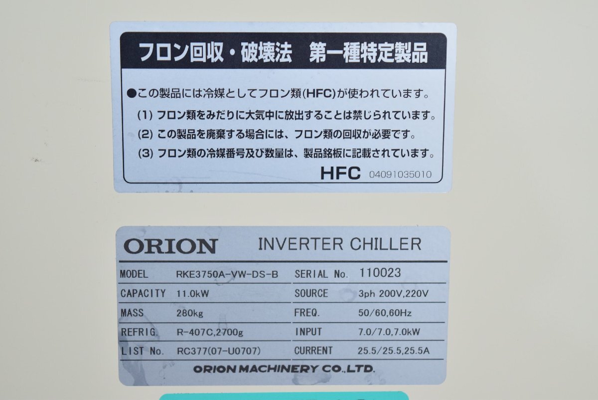 =値下げ=【オリオン】チラー RKE3750A-VW-DS-B 水冷式 2011年 冷却能力11.0kW 新品価格:1,390,000円 点検、清掃済み!!三重県