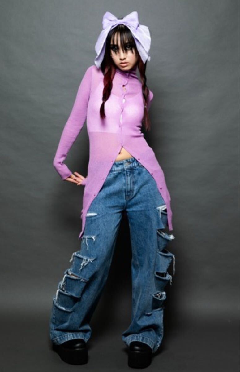 ローライズとフレアのシルエットが70'sを彷彿とさせるデニムパンツ。