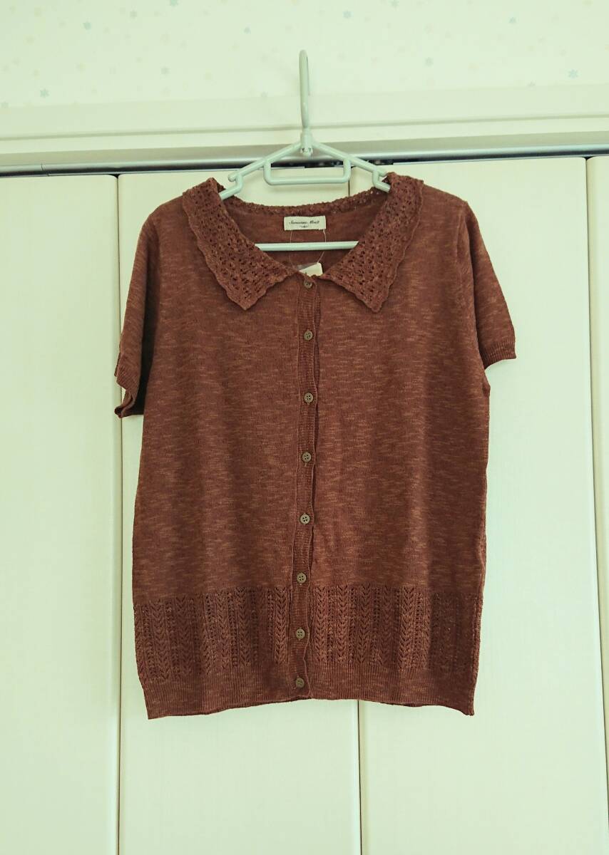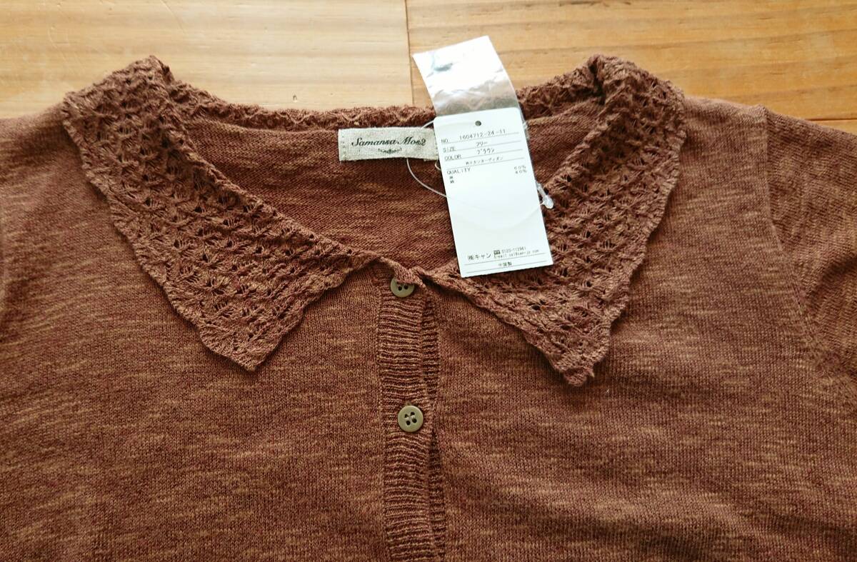 サマンサモスモス★綿麻 衿透かしカーディガン・ブラウン★タグ付き