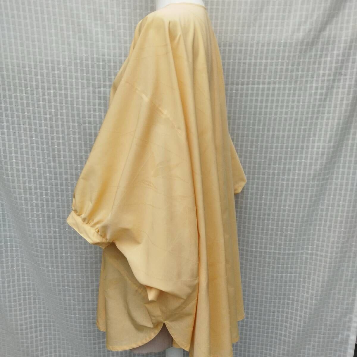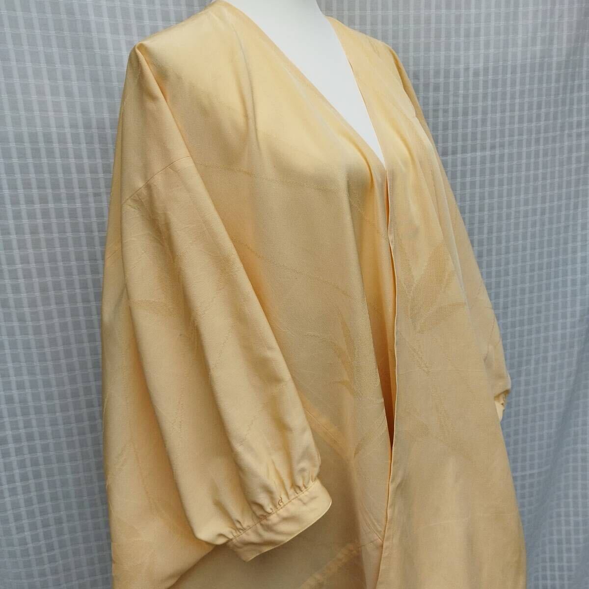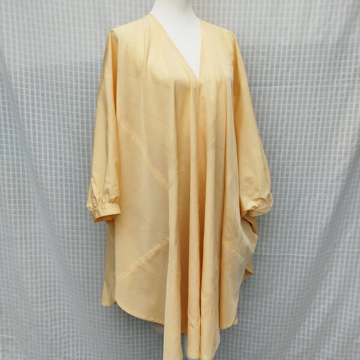 ★着物リメイク はおり物 ポンチョ 透かし織 卵色 正絹 フレアたっぷり★