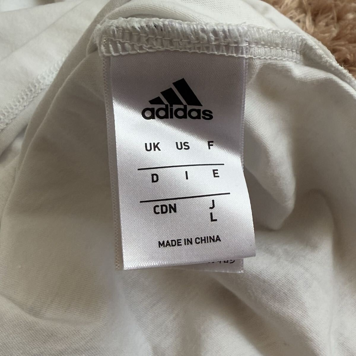 このadidasのホワイトTシャツは、シンプルでありながら洗練されたデザインが特徴です。クルーネックとショートスリーブのスタイルは、カジュアルな日常使いにも最適です。