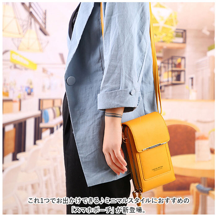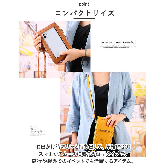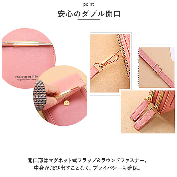 商品説明 | ・・これ1つでお出かけできる♪ミニマルスタイルにおすすめの「スマホポーチ」が新登場。 ・【コンパクトサイズ】 ・お出かけ時にサッと持ち出して、身軽にGO!スマホがスムーズに収まる縦型タイプで、旅行や野外でのイベントでも活躍するアイテム。 ・【安心のダブル開口】 ・開口部はマグネット式フラップ&ラウンドファスナー。中身が飛び出すことなく、プライバシーも確保。 ・【うれしい2ルーム仕様】 ・内側は2つのルームに分かれており、小物の出し入れがラクラク。どちらもガバっと開くササマチ付き。 ・【お財布代わりになる前面ルーム】 ・前面ルームは2つに仕切られており、カードやお札を収納可能。キャッシュレス派の方にも最適。 ・【スマホを収納できる後面ルーム】 ・後面ルームにはスマホをIN。背面のクリア窓ポケットに入れておけば、外側から簡単に操作できちゃう!(※お使いの液晶保護フィルムの厚みなどにより、外側からのスマホ操作ができない場合がございます。) ・【小物ポーチ代わりにも】 ・リップなどのコスメ、イヤホンやモバイルバッテリーなどをまとめてIN。 ・【すぐに取り出せるカードポケット】 ・開口部のフラップ内側に、使用頻度の高いカードを収納できるポケットを配置。 ・【持ち方を自在にチェンジ】 ・ショルダーストラップは長さ調節できるから、首掛けや斜め掛けもお好みで!取り外してバッグインポーチとしても。 ・【大人女子にぴったり】 ・表面にはソフトなPUレザー素材を使用し、落ち着きのある仕上がりに。フラップ部分のキラッと光るプレートがアクセント。 ・【ポケット仕様】 ・前面ルーム:カードポケット×4(※1つは半透明仕様)、フリーポケット×1 ・後面ルーム:背面クリア窓ポケット×1 ・前面(フラップ内):フリーポケット×1 |