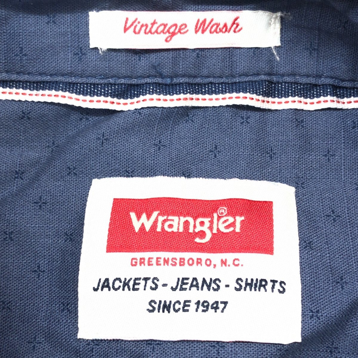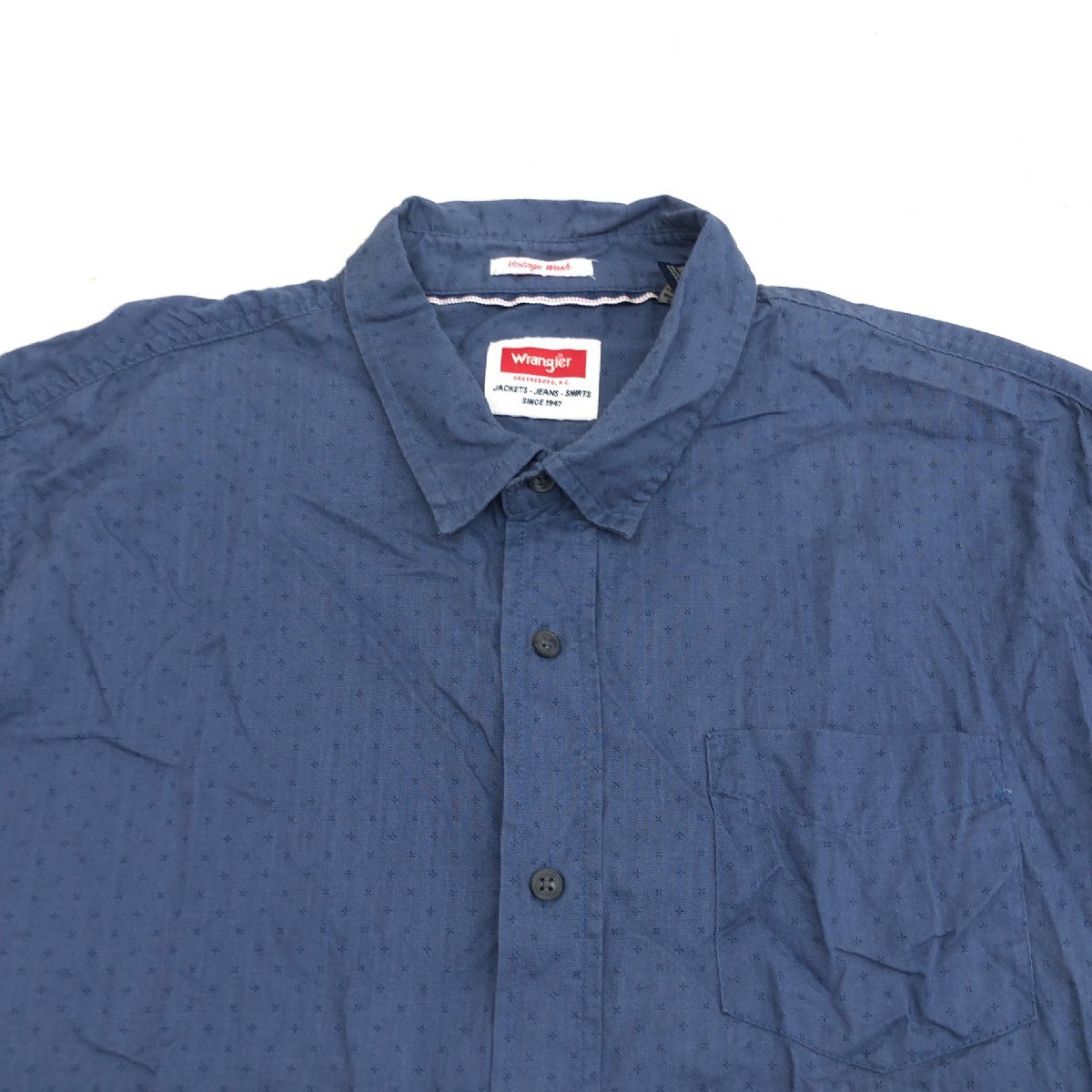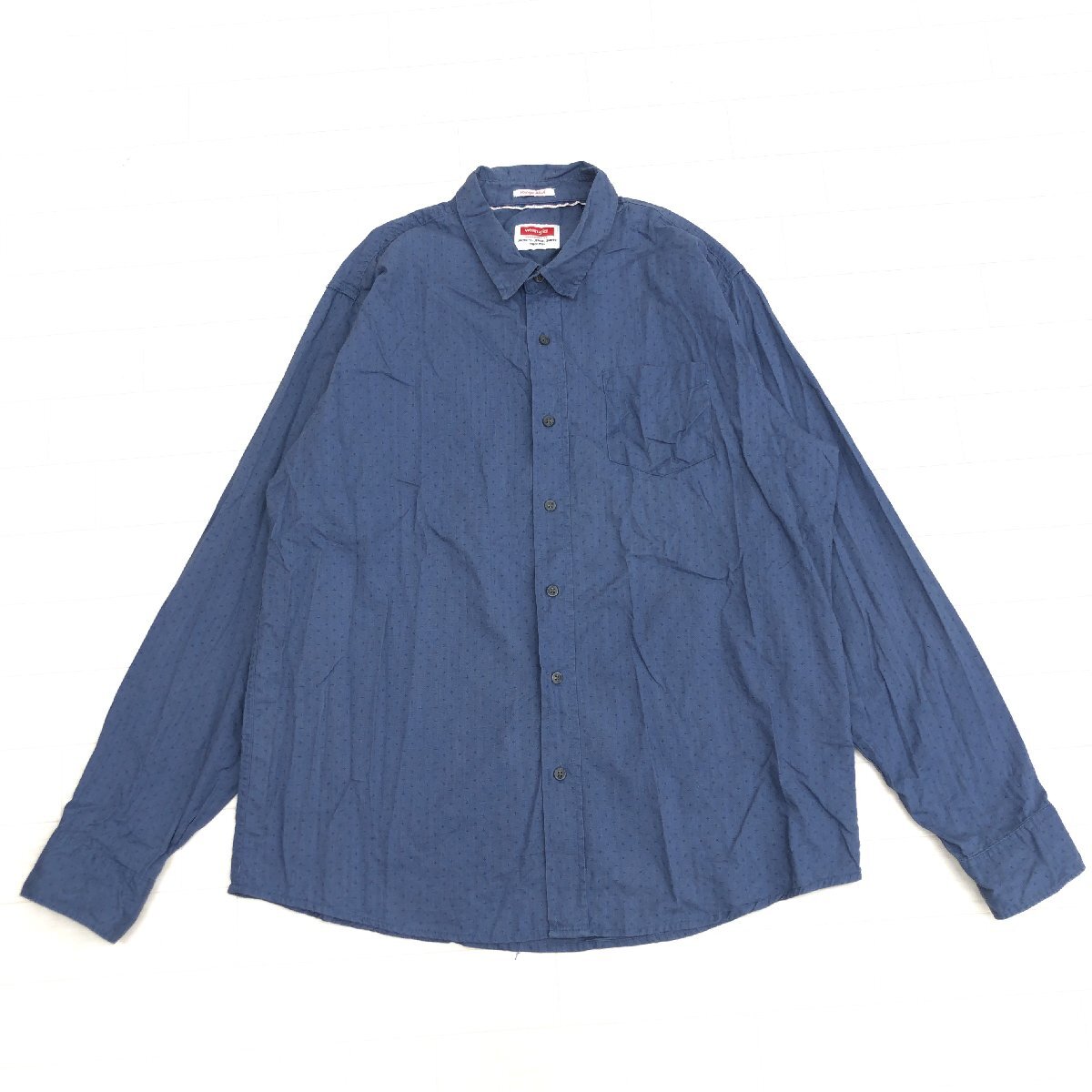 Wrangler ラングラー 刺し子刺繍 ヴィンテージウォッシュ コットン シャツ XL 紺 長袖 古着 ストリート ワーク系 2L LL 特大 大きい メンズ