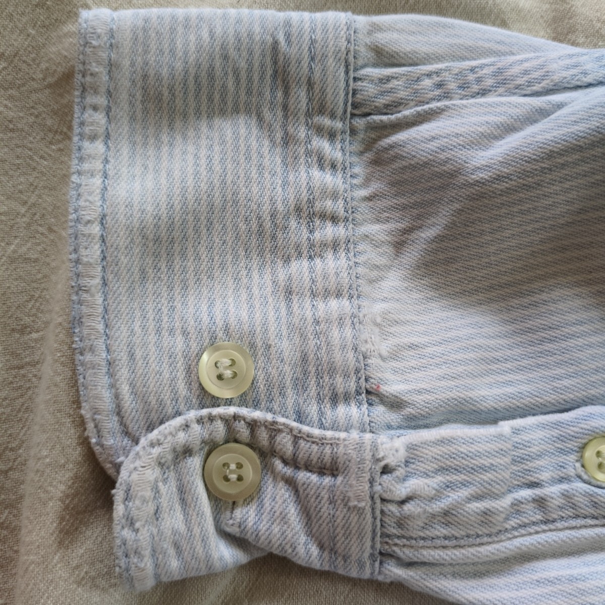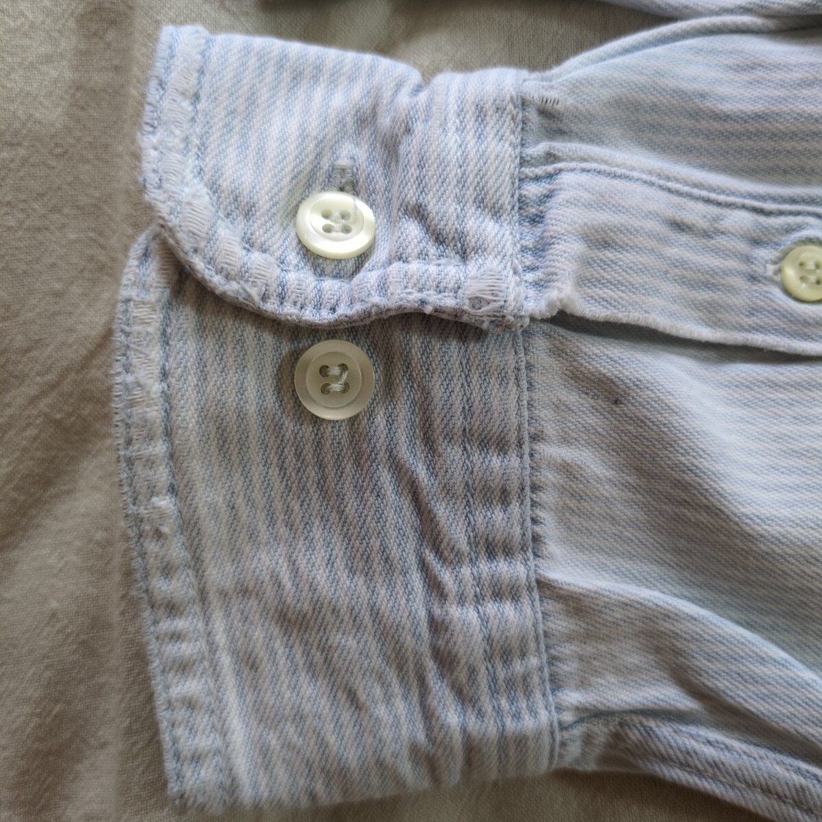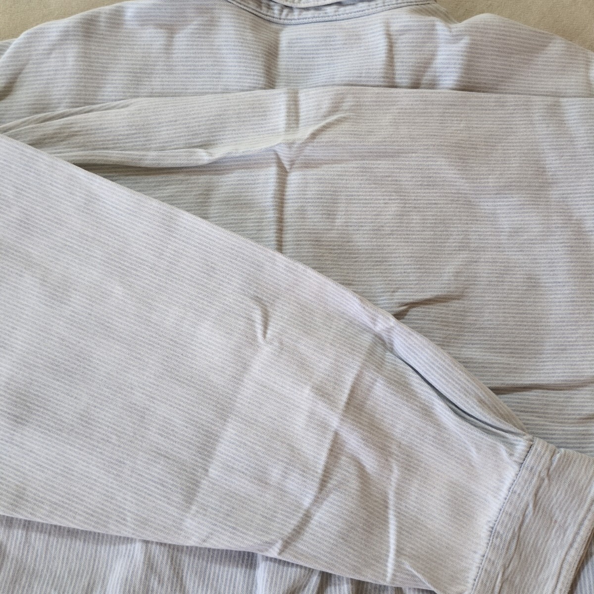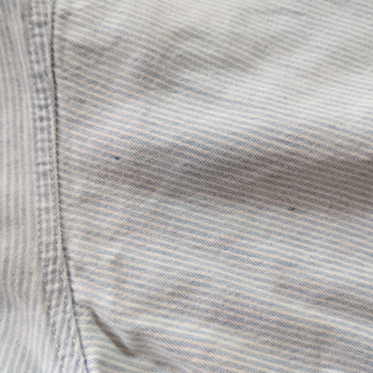 全体的に着用感、色褪せがあり、所々に汚れ、袖口に擦れがあります。