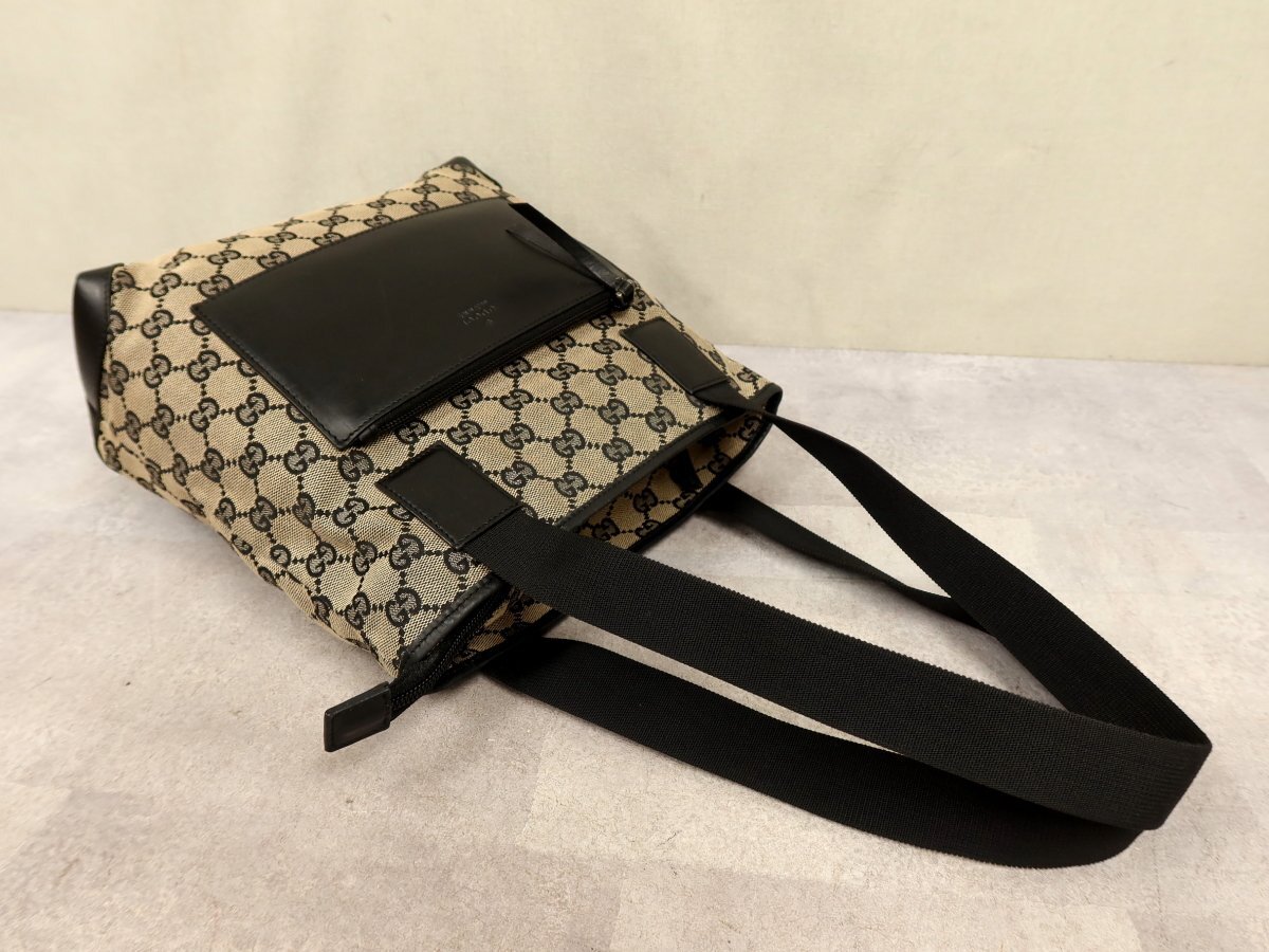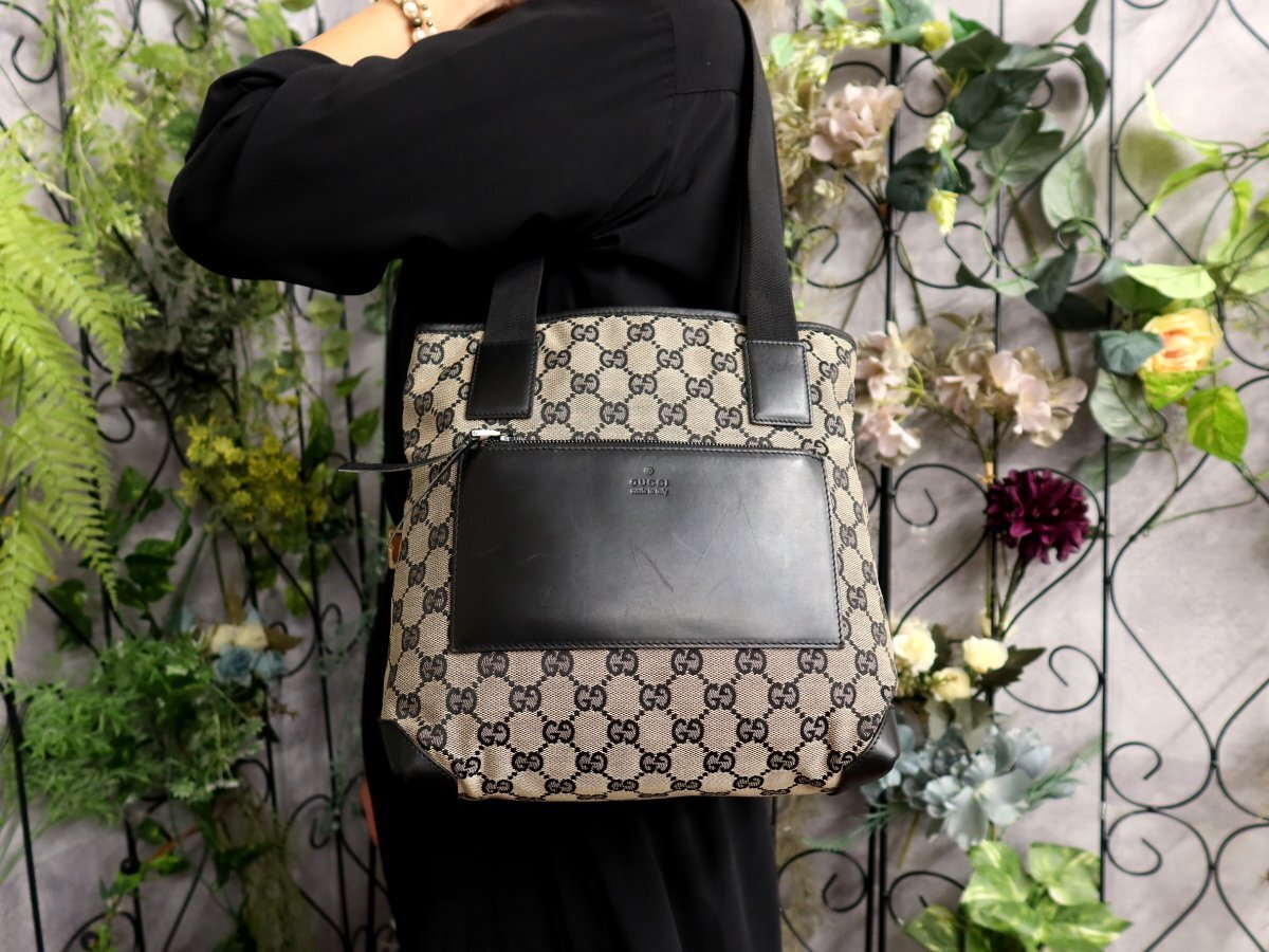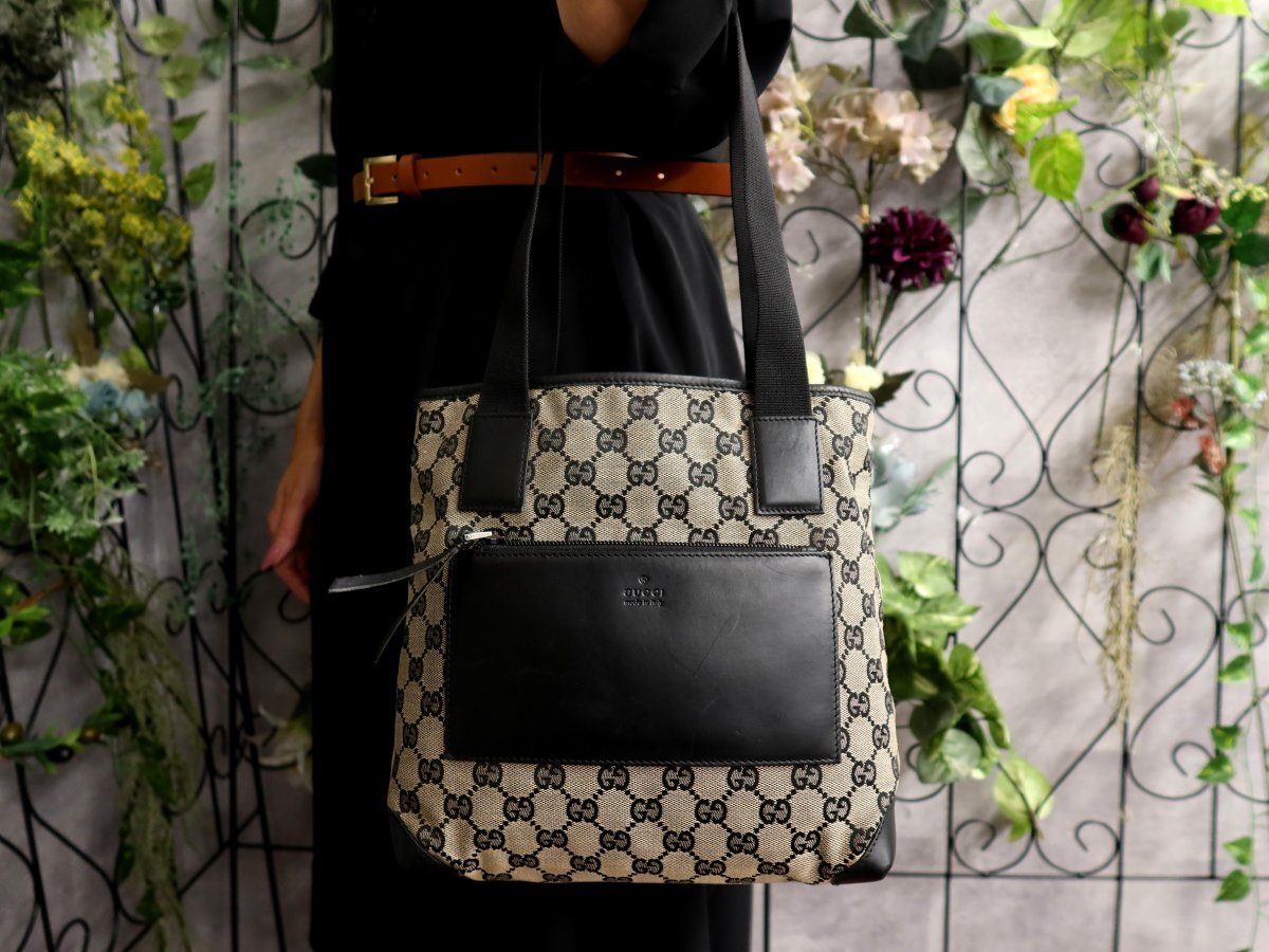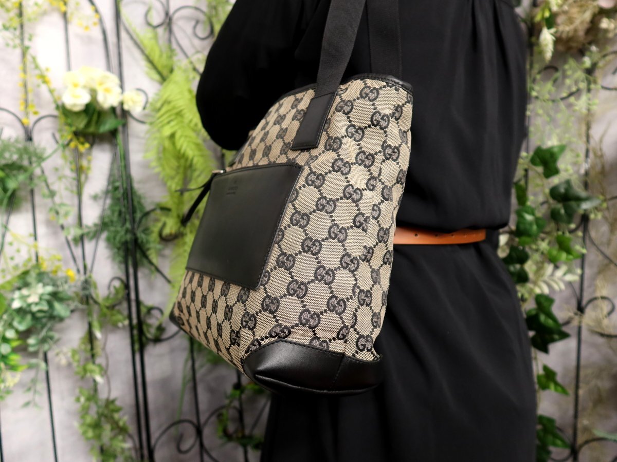 ●超美品●GUCCI グッチ●GGキャンバス カーフ レザー 本革●ハンド トート バッグ●黒 グレー●肩掛け●イタリア製●収納 かばん●Js60901