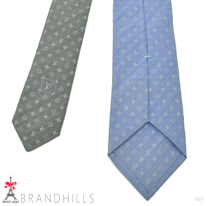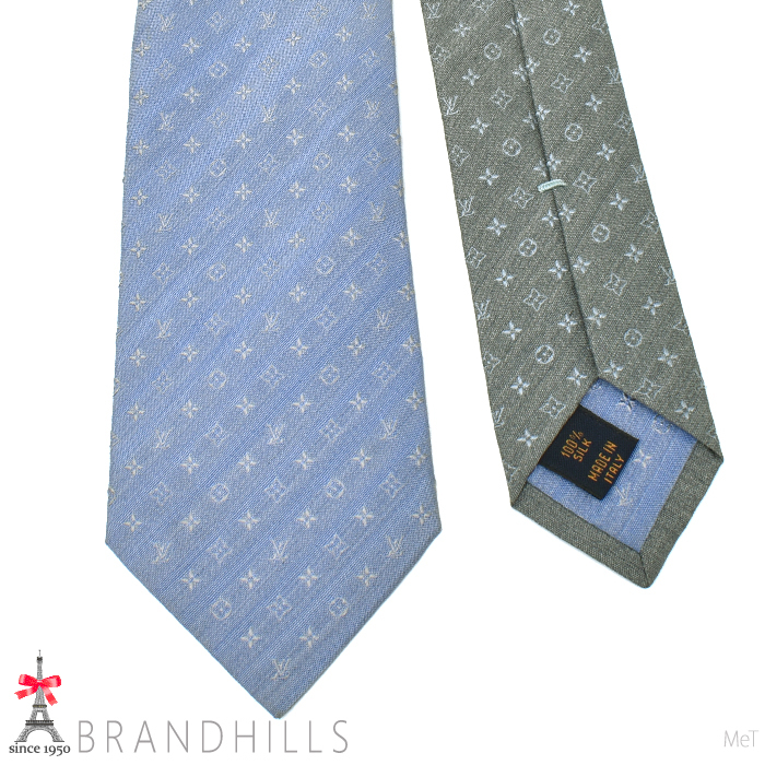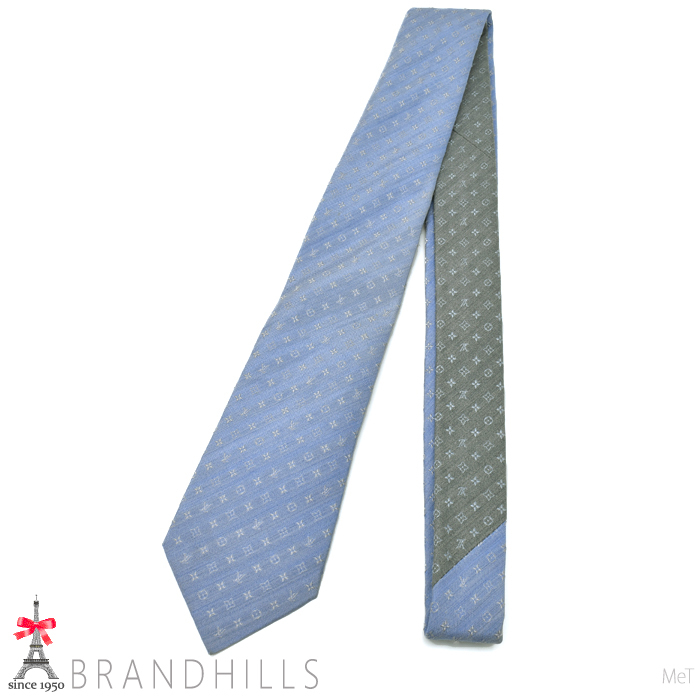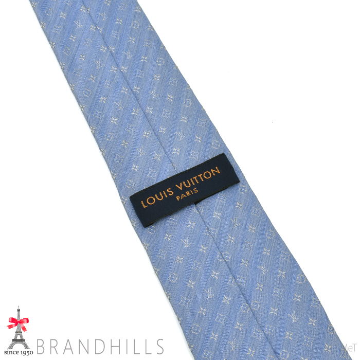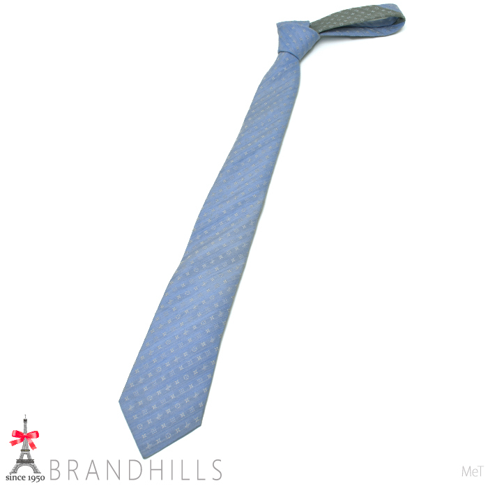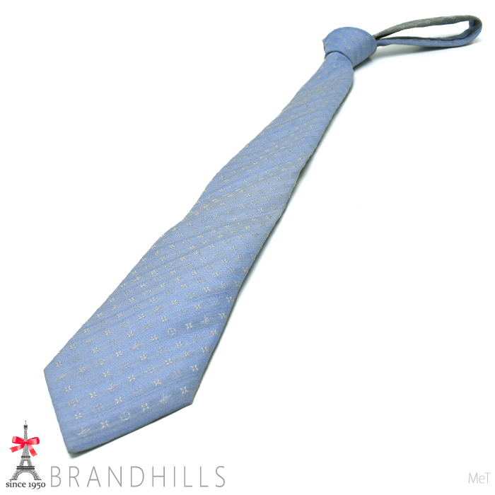 商品名ルイヴィトン ネクタイ モノグラム シルク100% ライトブルー グレー 剣先幅7cm