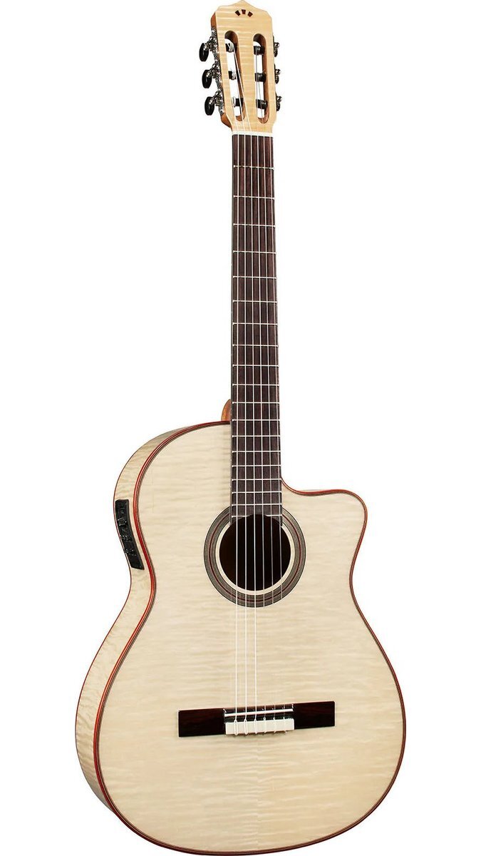 • Fusion 12エキゾチック・トップ・ギターは、伝統的なナイロン弦のトーンを提供すると同時に、独特のモダンな美学を備えています。ソリッド・スプルース・トップに本物のエキゾチック・ウッド単板を極薄に貼り、トーンに悪影響を与えることなくドラマチックな外観を実現しています。Fusion 12 White Sandsギターは、美しいフレイムメイプルのバックとサイドが特徴で、マッチするフレイムメイプル単板のオーバーレイがそれを引き立てています。パドーク・バインディングと手作業ではめ込まれた木製ロゼッタが、そのユニークな美しさをさらに引き立てます。また、Fishman(R)Presys Blendピックアップ・システムが内蔵されており、アンプを使用してもそのトーンを維持します。