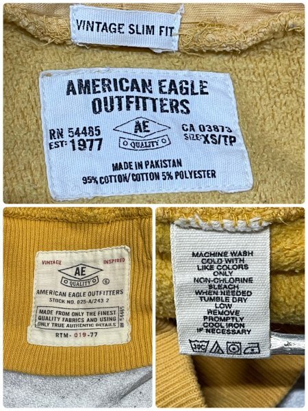 AMERICAN EAGLE フーディー ビンテージ加工 アメリカンイーグル  vintage SLIM FIT ビンテージ スリムフィット パーカー 脇リブ YL2509