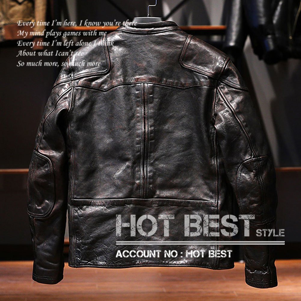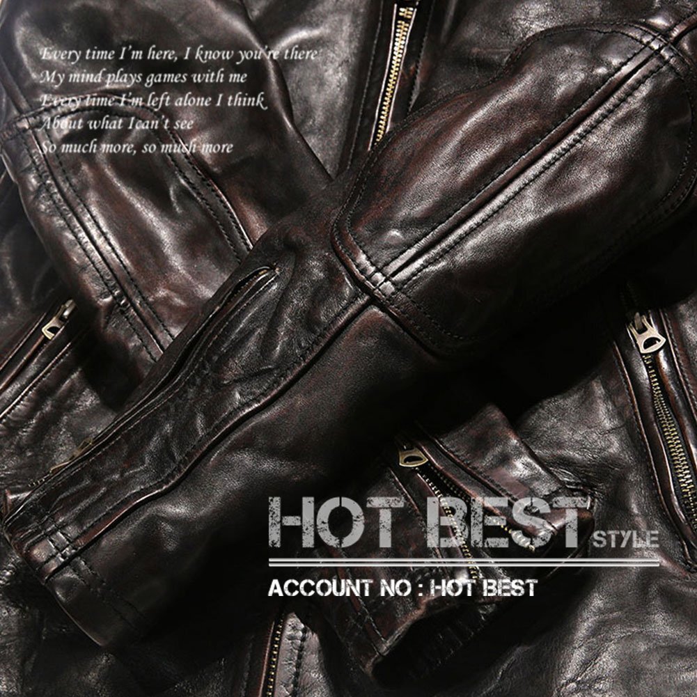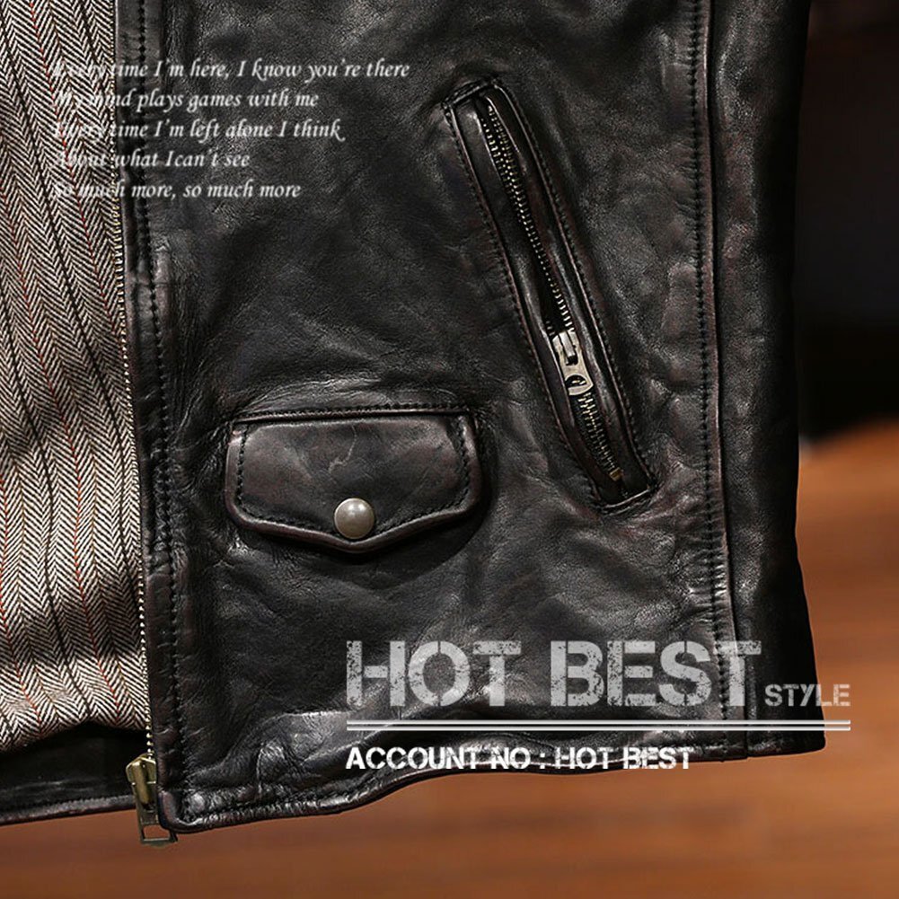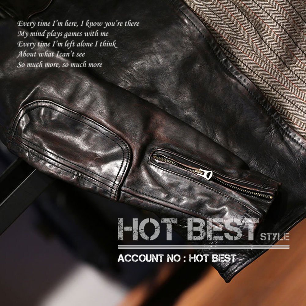 最高峰 1.4mm 茶芯ホースハイド メンズ 復刻50's ヴィンテージ加工 パテッド シングルライダース レザージャケット 馬革【XXXL】HBY675
