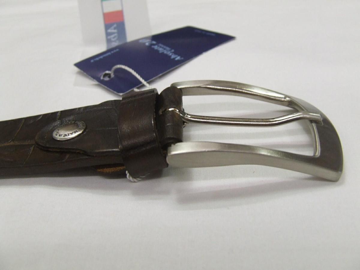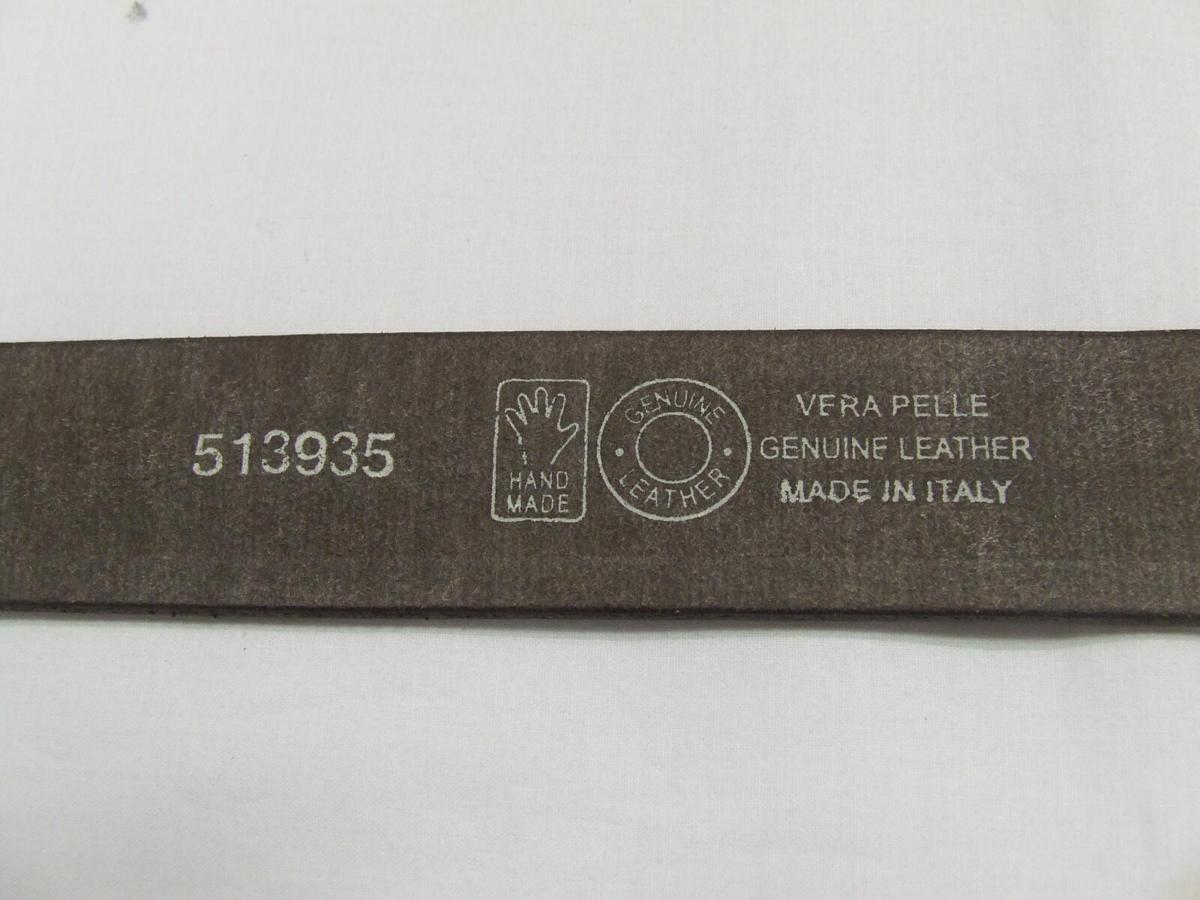 本革を知るならイタリアンレザーから始めよう! 革の本場イタリアで生まれるレザーは「イタリアンレザー」と呼ばれ、世界中で多くの方に愛されている本革です。特に初めて革製品を持つのであれば、種類も豊富で選びやすいイタリアンレザーがおすすめです。 イタリアンレザーには、3つの大きな特徴があります。 オイルレザー イタリアで作られるほとんどの革は、オイルをたっぷりと染み込ませたオイルレザーとなっています。オイルレザーは柔らかくてしっとりとした手触りと、深みのある色つやが特徴です。新しい革は明るい色味で光沢もあり、女性にも人気があります。 牛革を使用 イタリアンレザーは、牛革を使用していることがほとんどです。牛革は他の革(羊や馬、クロコダイルやヘビなど)に比べると、比較的手に入りやすいのが特徴。その分価格も抑えられており、初めてでも選びやすいレザーです。 初心者向けとはいえ、皮の種類や部位、加工法などはさまざま。知れば知るほど奥が深い、大人な魅力がたくさんあります。 バケッタ製法 イタリアで作られる高級レザーの多くは、この「バケッタ製法」と呼ばれる製法で作られています。バケッタ製法は、イタリアの伝統的な製法です。膨大な時間とコストをかけて、じっくりと特殊なオイルを革に染み込ませていく製法です。 しっとり滑らかな手触りと、使うほどに深く変化する色つや。乾燥しにくく、メンテナンスをほとんど必要としない強さが特徴です。「ミネルバボックス」や「マットーネ」は、バケッタ製法で作られる代表的な高級イタリアンレザーです。 状態:新品タグ付き サイズ:ウエストサイズ105cm~117㎝(ロングサイズ) 長さは切って簡単に調節できます。 ベルト幅:34MM 素材:牛皮 カラー:ブラウン系 希望小売価格:12,800円(税抜き) 製造:イタリア ※皮革製品につき多少のスレ・キズ等はご了承願います |