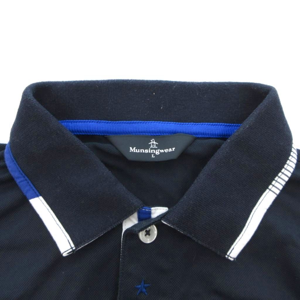 マンシングウェア MUNSINGWEAR ポロシャツ 長袖 ロゴ刺繍 L ダークネイビー /JS ■GY22 メンズ