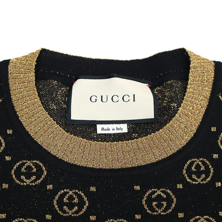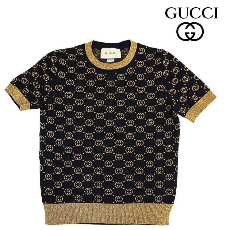 商品名 | GGロゴ ラメ 半袖 ニット プルオーバー トップス GGパターン&ゴールドトリム |