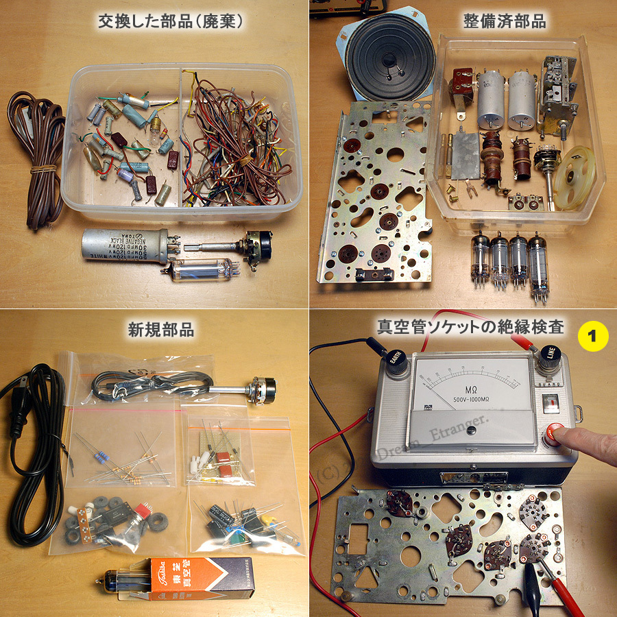 真空管(35W4)は検査済中古品、その他の交換部品は新品を使用しています。