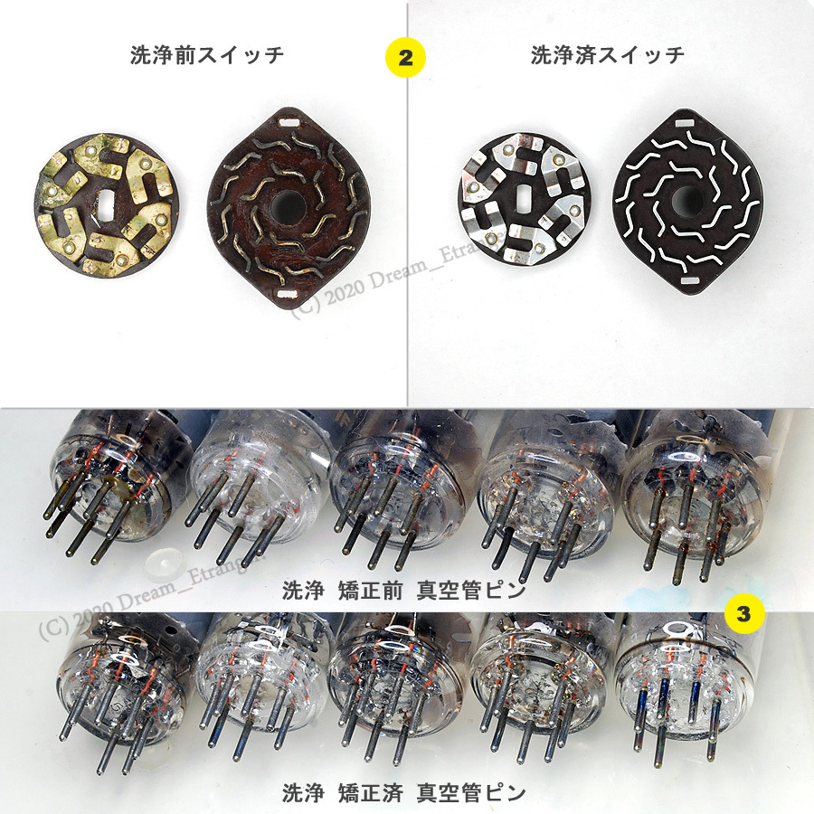 真空管ソケット、真空管ピンの洗浄、ピン・ストレートナーによるピン曲がり矯正(写真③)