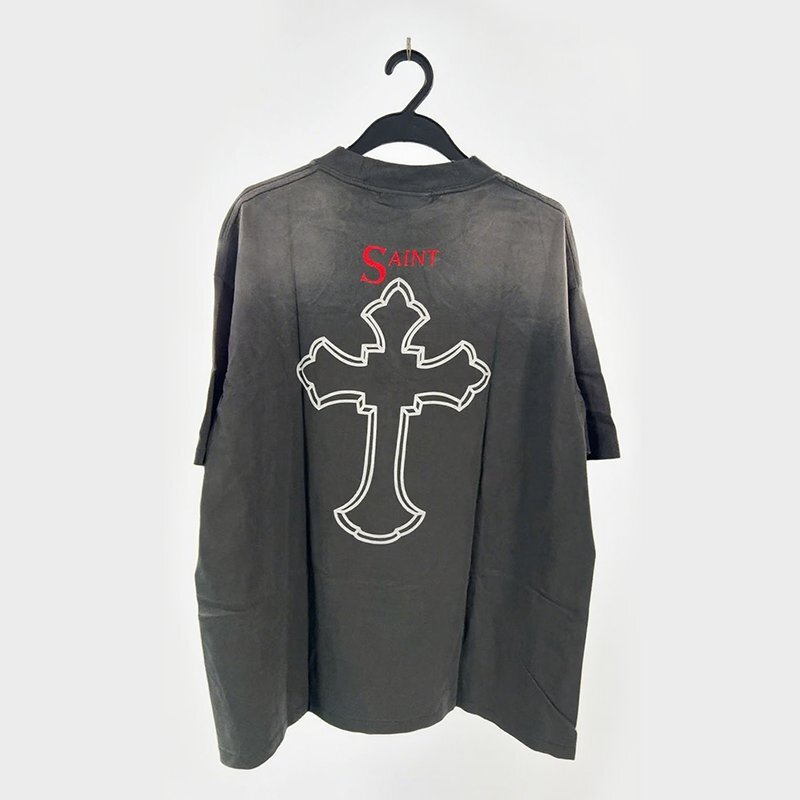 SAINT Mxxxxxx セントマイケル 半袖 tシャツ ダメージ加工 ブラック Lサイズ 2PC_SS TEE/2PAC/BLACK