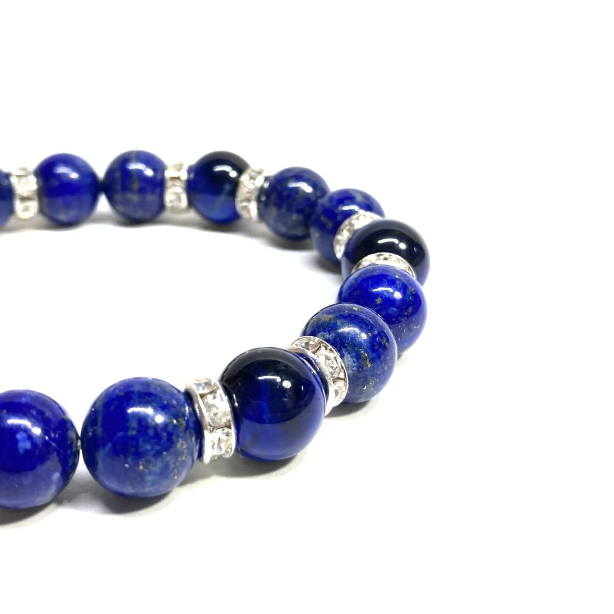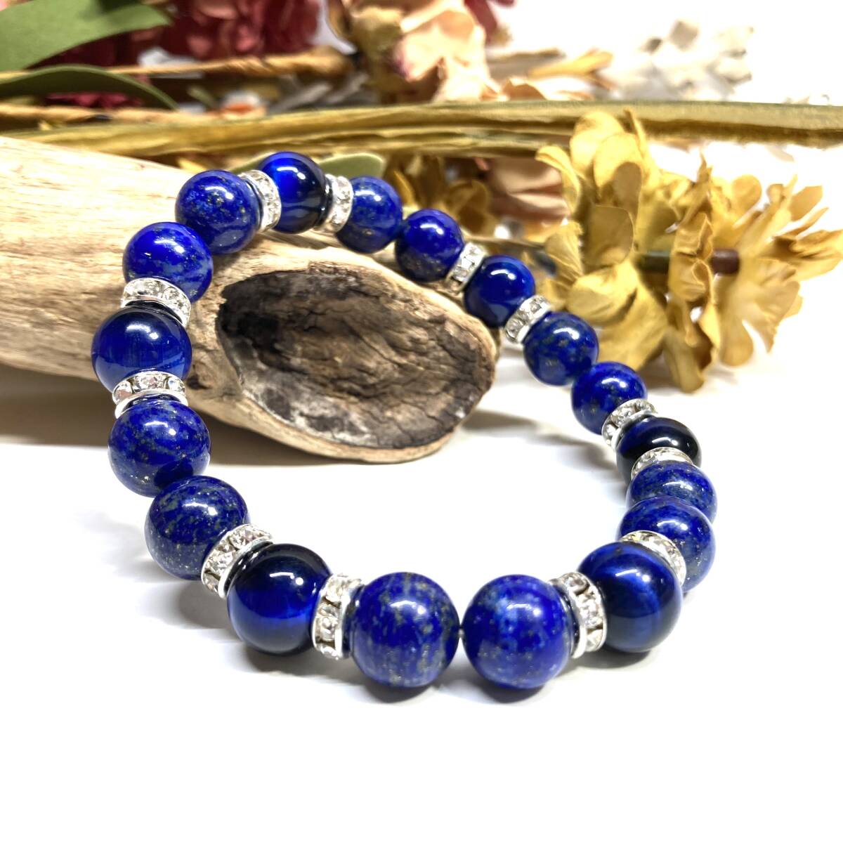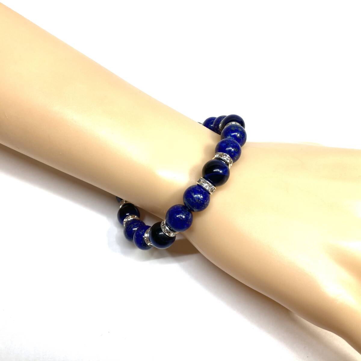 こちらは、ラピスラズリとブルータイガーアイを組み合わせたパワーストーンブレスレットです。間にはロンデルを挟み高級感あるデザインに仕上げております。石大きさは腕にも馴染みやすいように10mm玉で内径約18cm(伸可能)です。(サイズ変更の場合は取引ナビにてご連絡をお願いします。) 数に限りがございますので気になる方はお早めにどうぞ。