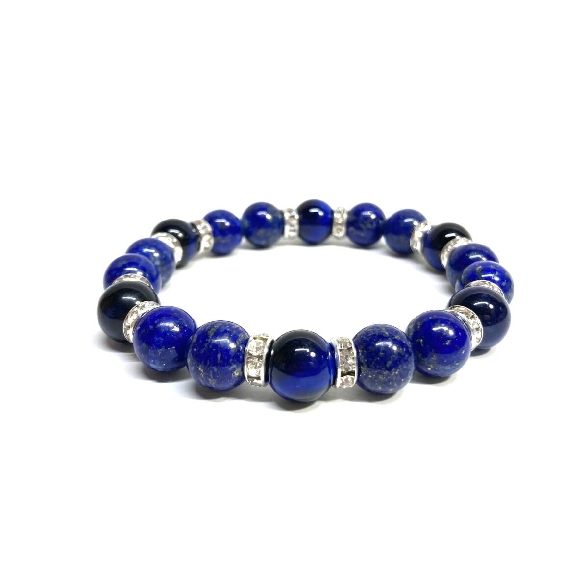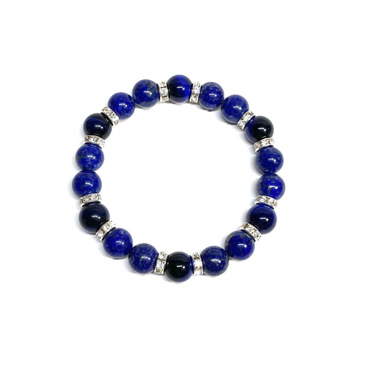 ラピスラズリ&ブルータイガーアイ パワーストーン ブレスレット 天然石ブレス (シルバー) 10mm メンズ・レディース 金運 ☆