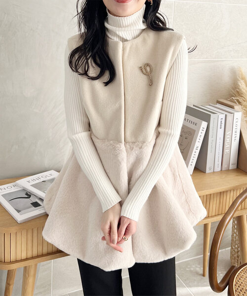 参考商品名:フェイクウール×ファーペプラムベスト