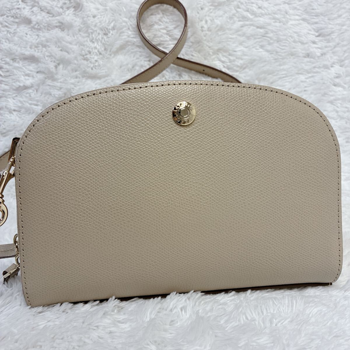 ロゴ入りのホックがワンポイントに光る、ミニマルなルックスのショルダーバッグ。