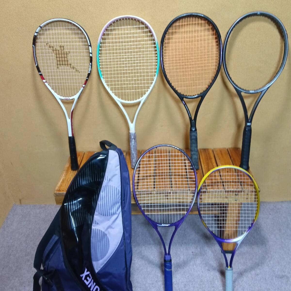 商品説明 | 硬式テニスラケット6本・ヨネックスバック :Vigors VSTN-6753 トップ部に使用時のキズあります。 :CERES Ciel Blue 使用時のキズ・グリップ劣化あります。 :ヤマハ PROTO-07 使用時のキズ・グリップ劣化あります。 :ヤマハ ADMIC 未使用品でガット付いていません。保管時にグリップのキズあります。 :カワサキNSX31S 使用時のキズ・グリップ劣化あります。 :カワサキOT-023 ミニラケット 使用時のキズあります。 :ヨネックスバック 使用に伴う傷あります。 画像で確認判断お願いします。 | ||||||||||||||