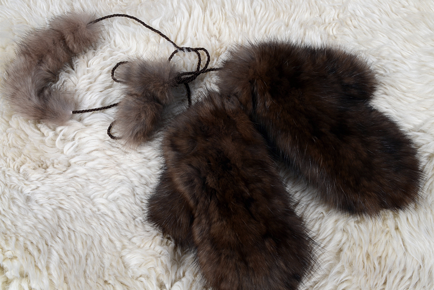 ◆新品限定◆上質なセーブル 編み込みミトン手袋/防寒 グローブ 冬 紐付き 毛皮リアルファー セーブルファー | |||