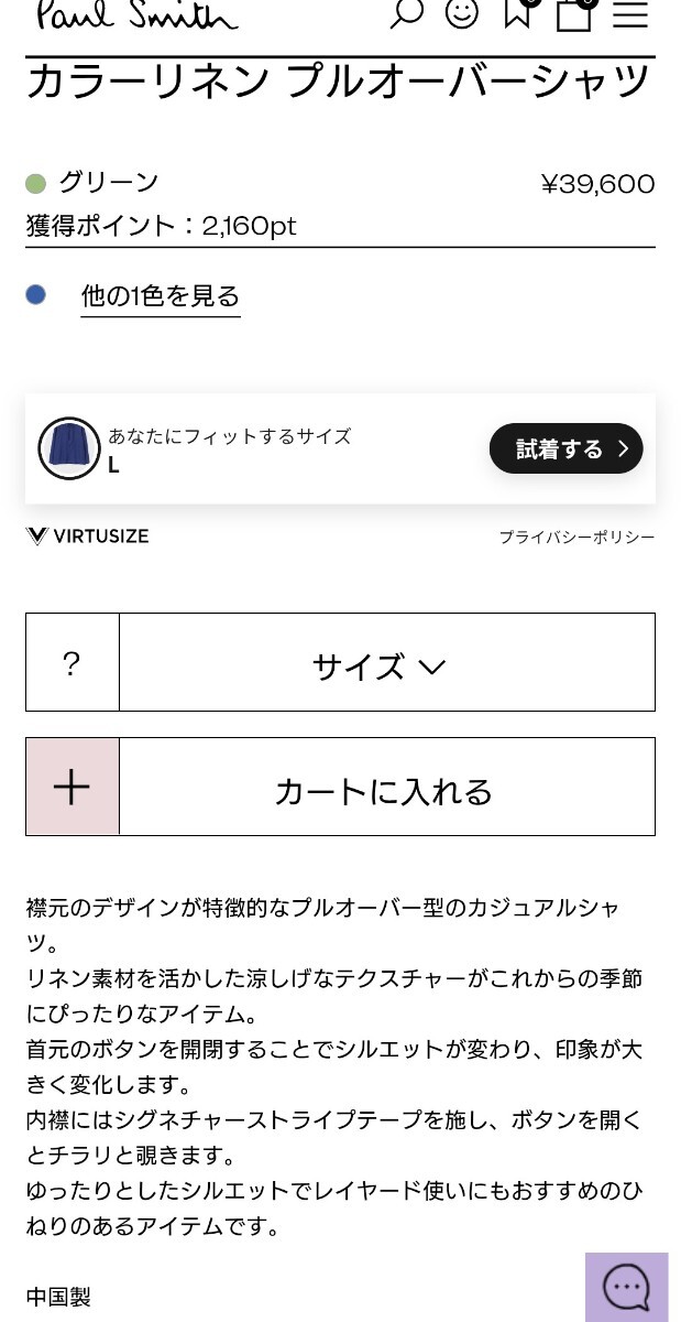 ポールスミスの長袖シャツ、プルオーバータイプです。