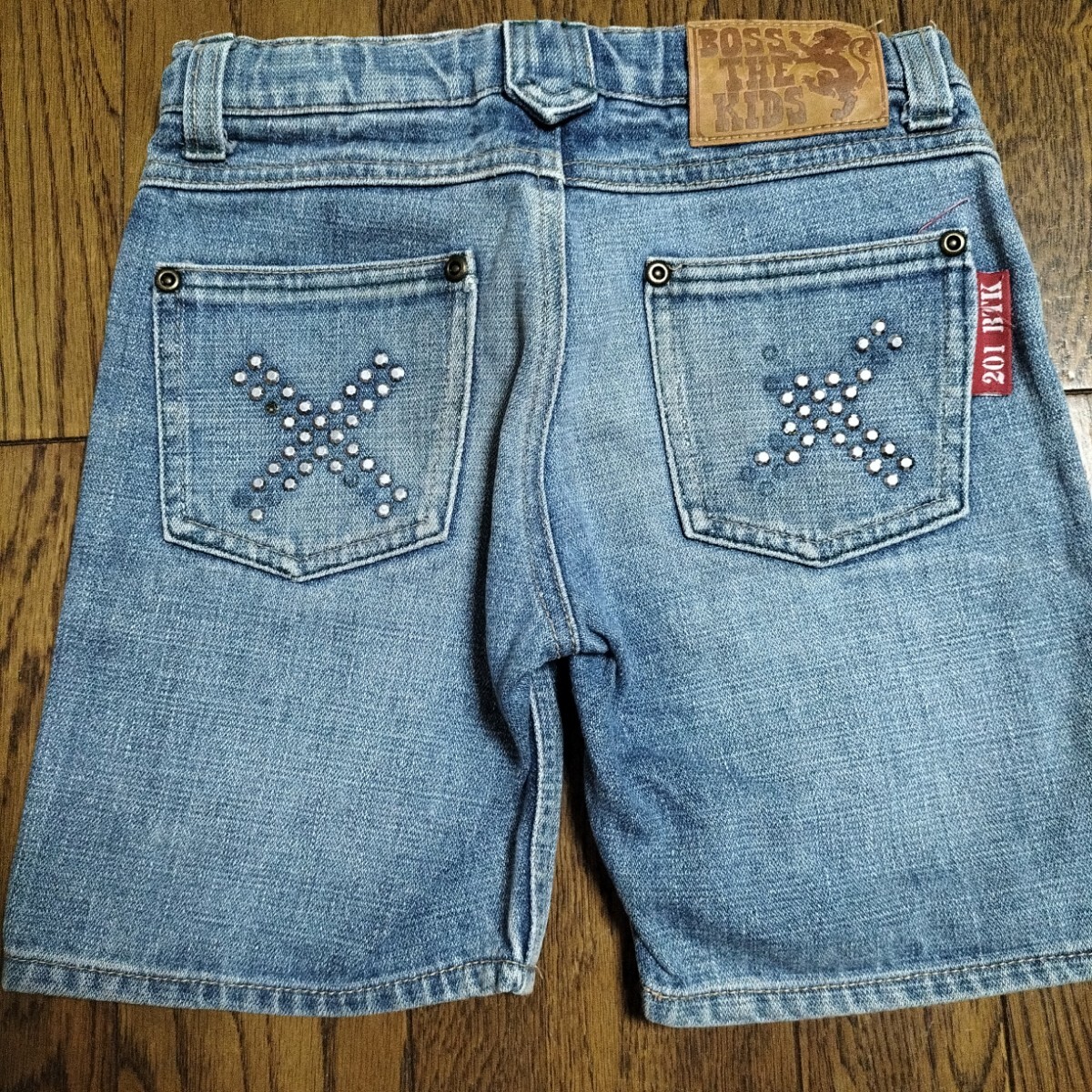 デニム素材のBTK製ハーフパンツ、120cmのプリントデザイン。