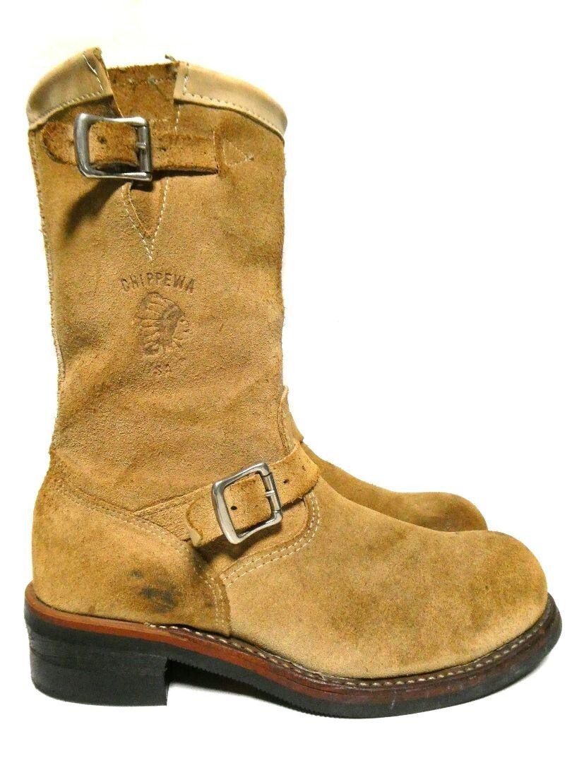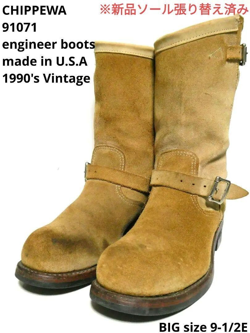 人気モデル!ビッグサイズ9-1/2E!新品ソール張り替え済!チペワ91071ベージュスエードエンジニアブーツCHIPPEWA