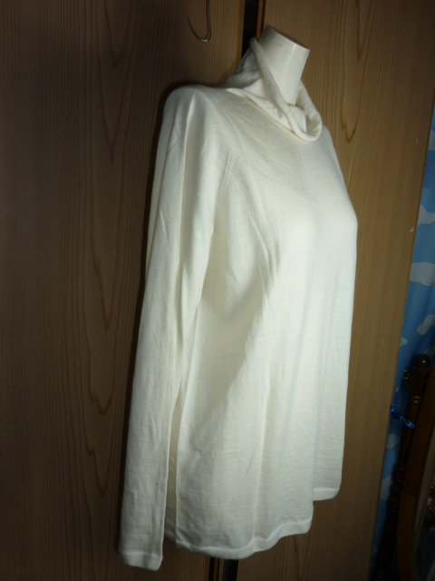C'53★美品★UNIQLOxTheory・サイズXL【生成り系色・タートルネック襟・毛100%ニット】★商品詳細は記載文を・・