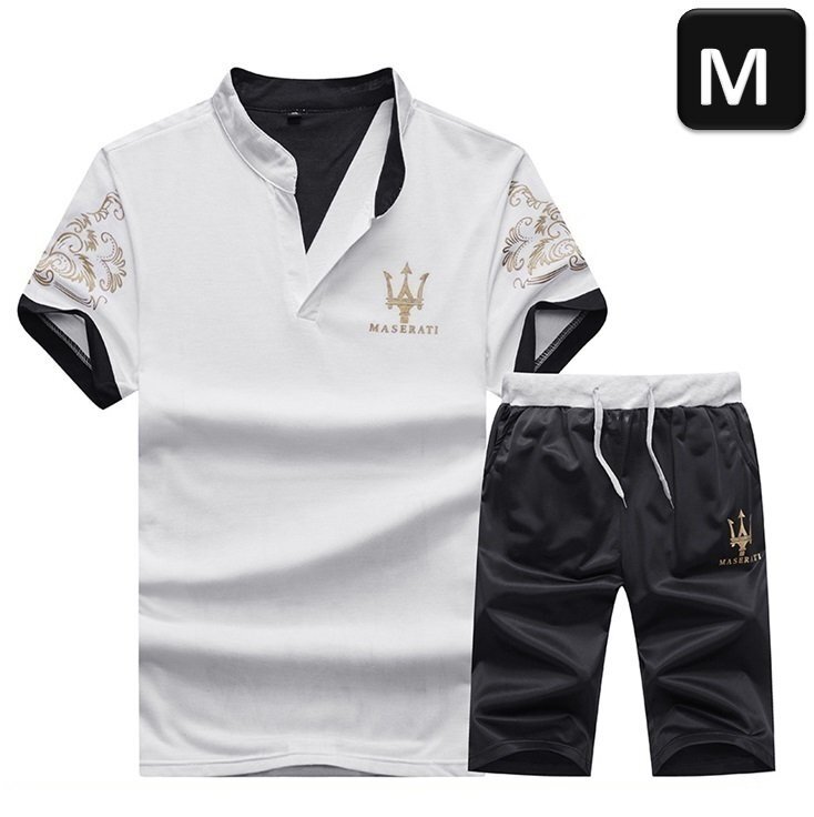 ☆大人気商品☆ジャージ 上下 セット 半袖 部屋着 ルームウェア スポーツウェア セットアップ ホワイト×ブラック Mサイズ 【241】