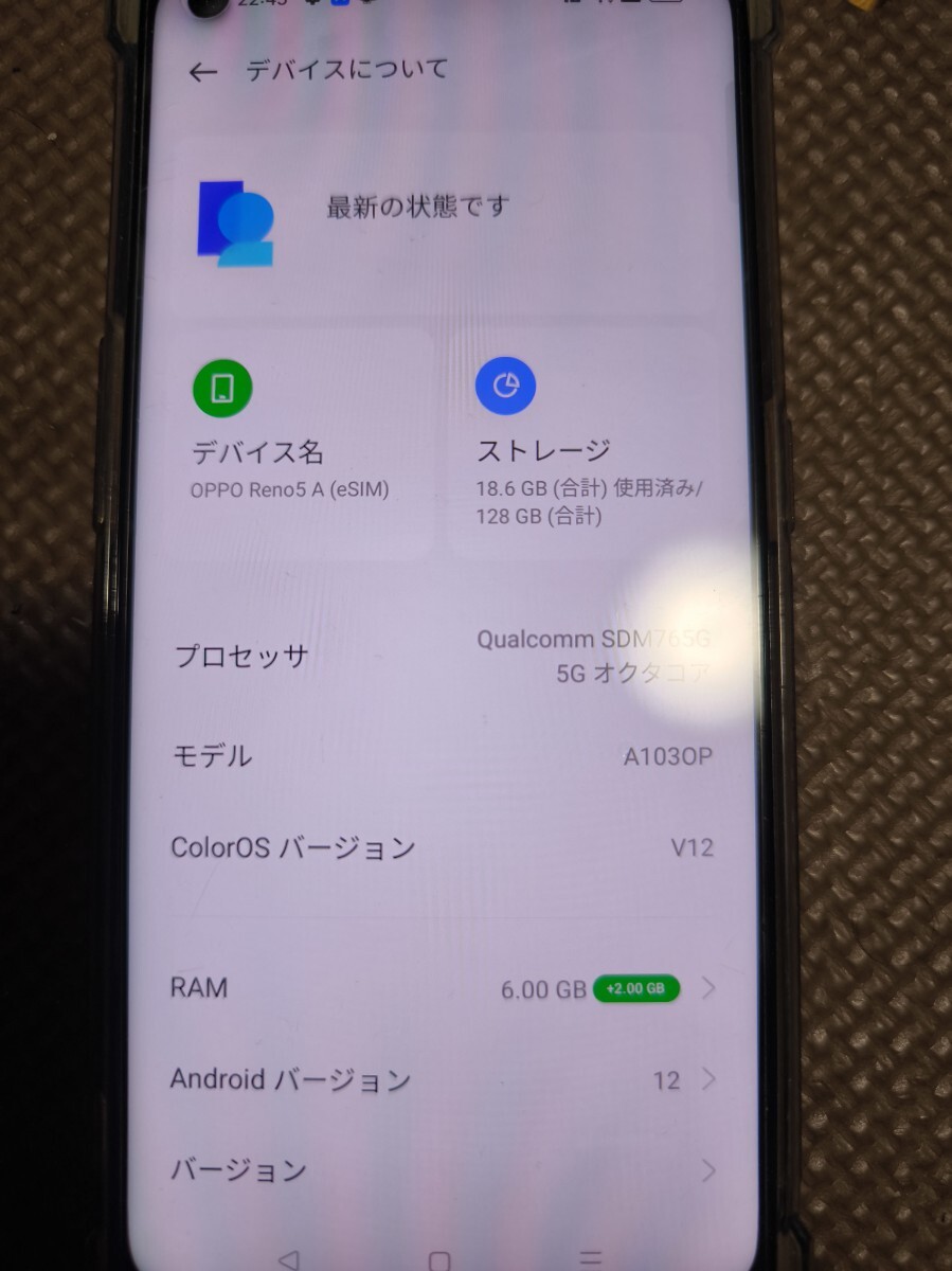 Reno5 A 6.5インチ メモリー6GB ストレージ128GB シルバーブラック ワイモバイル