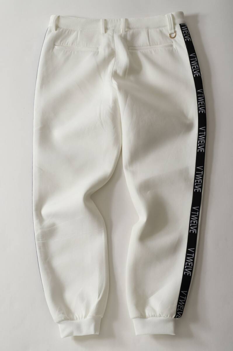 パンツ →レッグラインに沿って、V12のロゴテープの装飾が際立つリブパンツ。 スポーティかつカジュアルなスタイルにマッチする最適な一枚。 履き心地のよいダンボールニット素材で、保温性に優れ薄すぎない程よい肉厚さもポイントです。