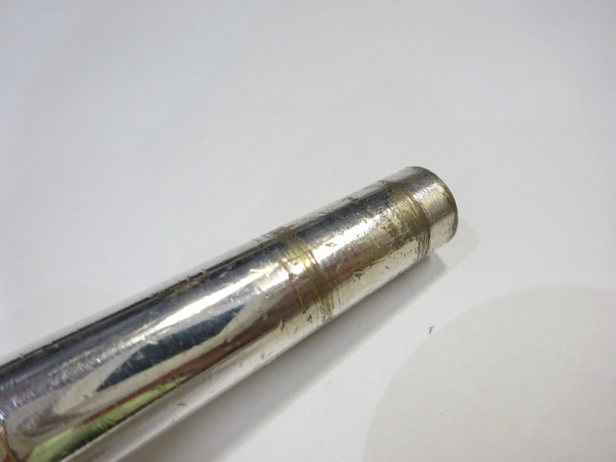 楽器にさしてできる傷やすり傷、磨き傷など使用による傷が全体的にあります。