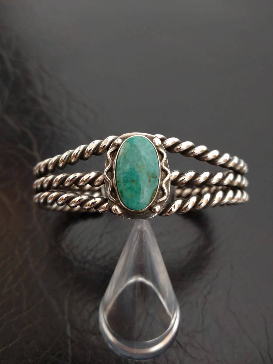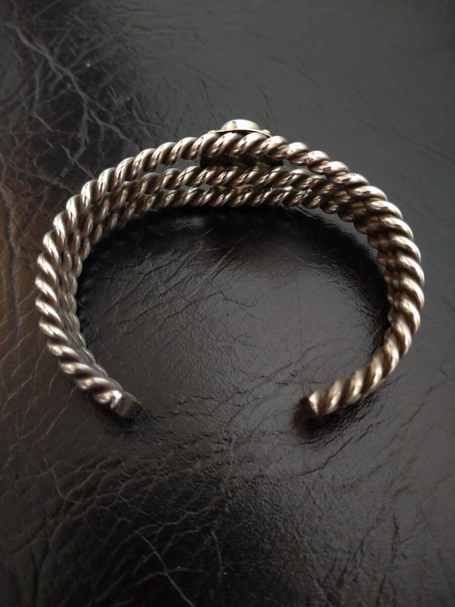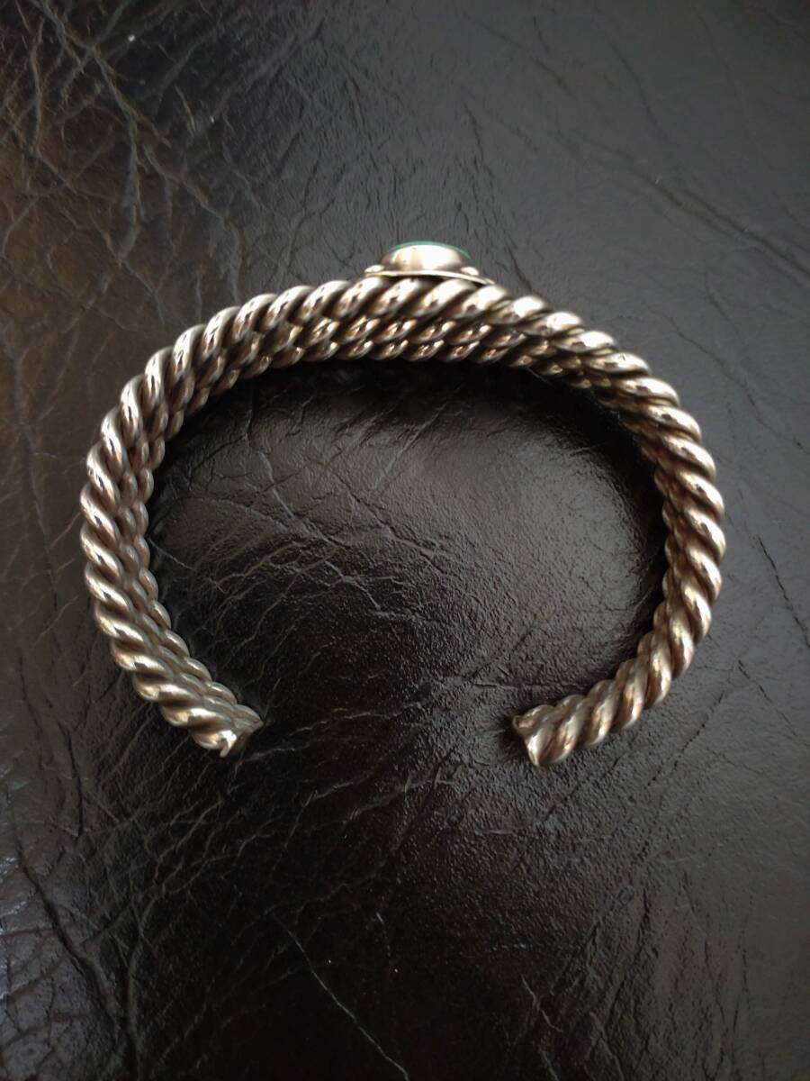 美しいターコイズとツイスト銀細工が特徴的な一点物のシルバー925バングルです。