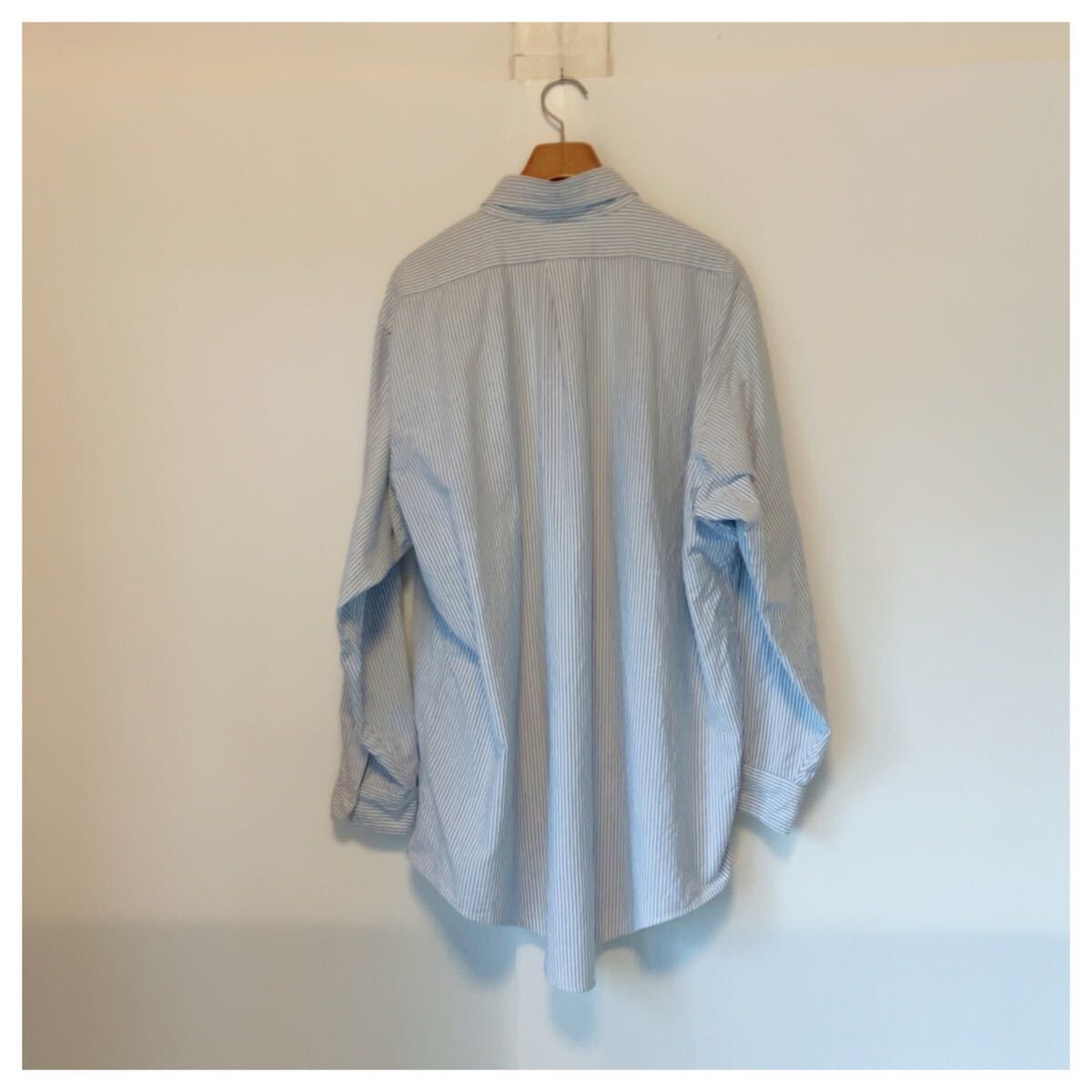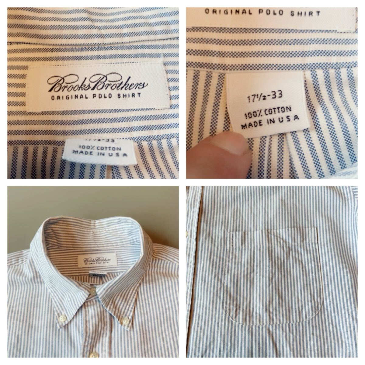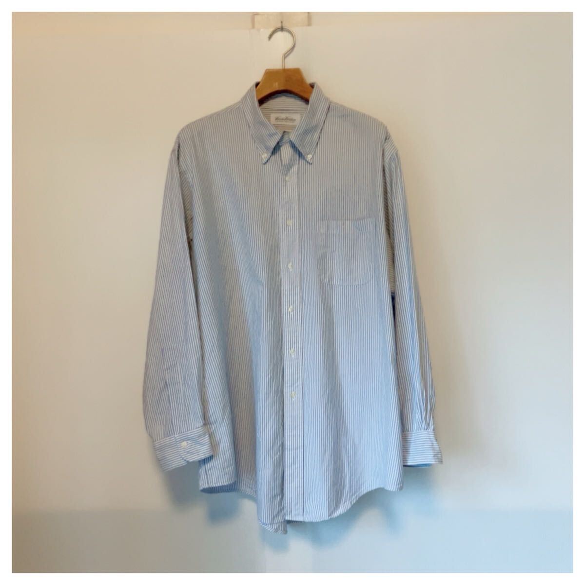 ☆90’s USA製 ブルックスブラザーズ ストライプ オックスフォード ボタンダウンシャツ (17 1/2-33) 青×白 アメリカ製 オールド