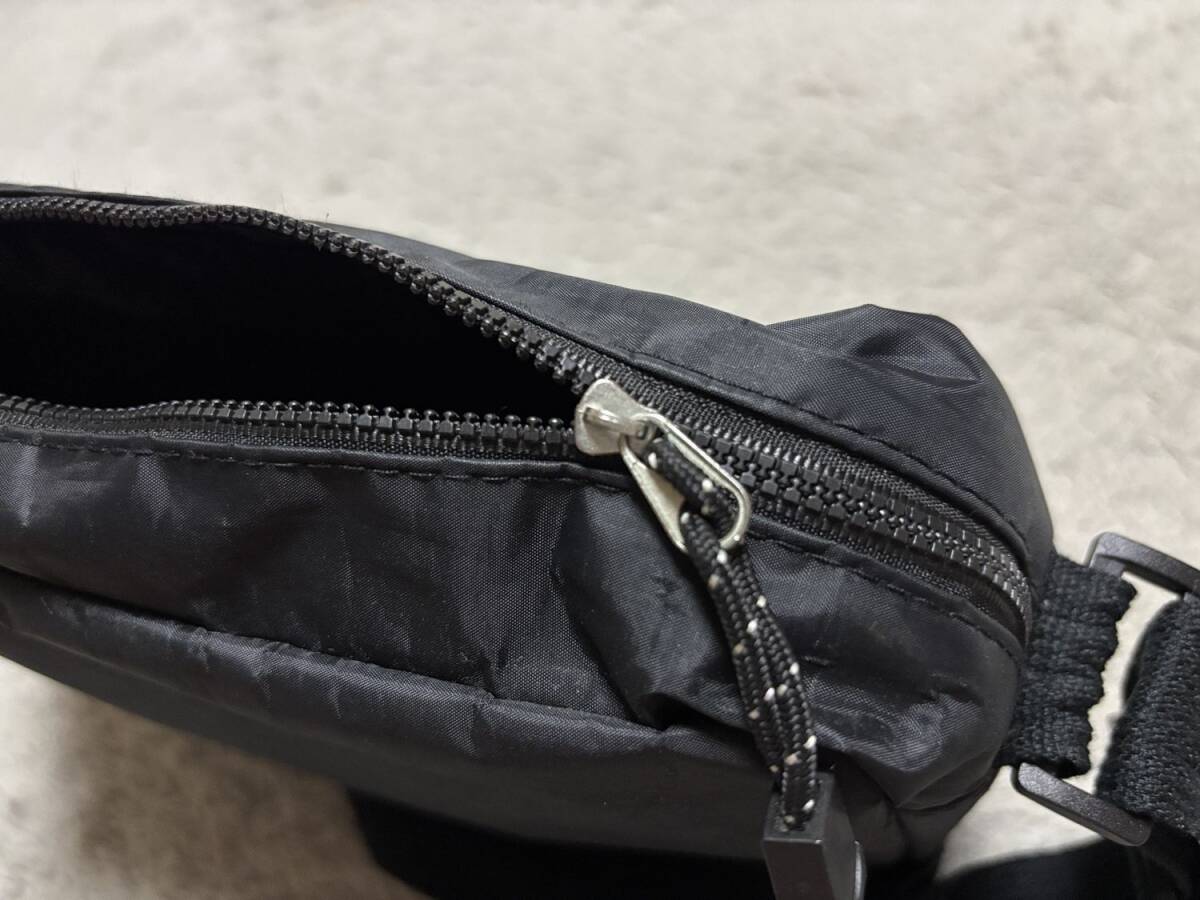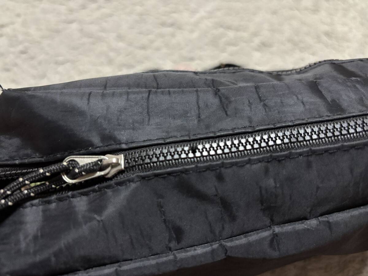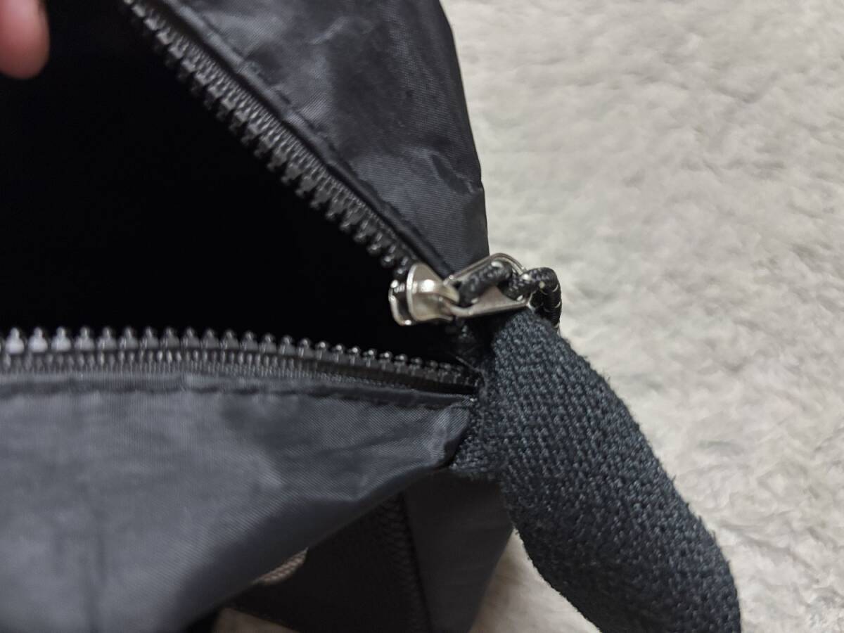 ファスナーが一コマ取れている関係上、ファスナーが片側外れています。