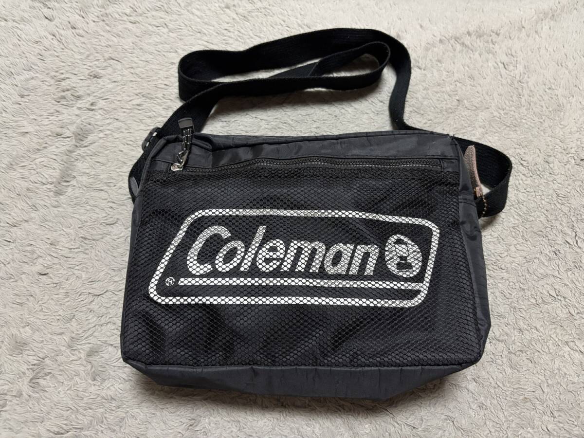 ★中古★Coleman コールマン ショルダーバッグ 黒 ブラック メッシュポケット 本革タグ付きです。