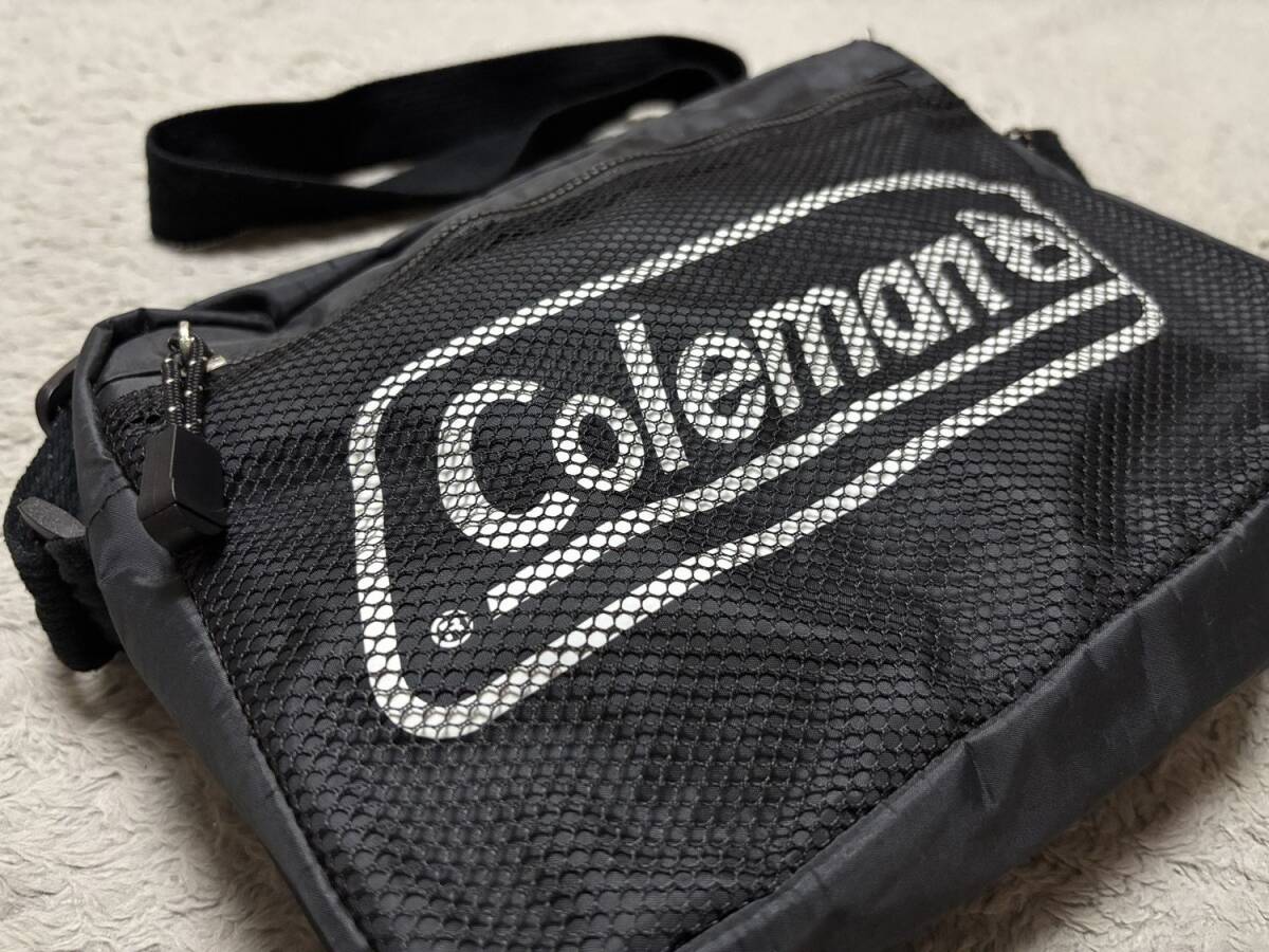 ★中古★Coleman コールマン ショルダーバッグ 黒 ブラック メッシュポケット 本革タグ付き