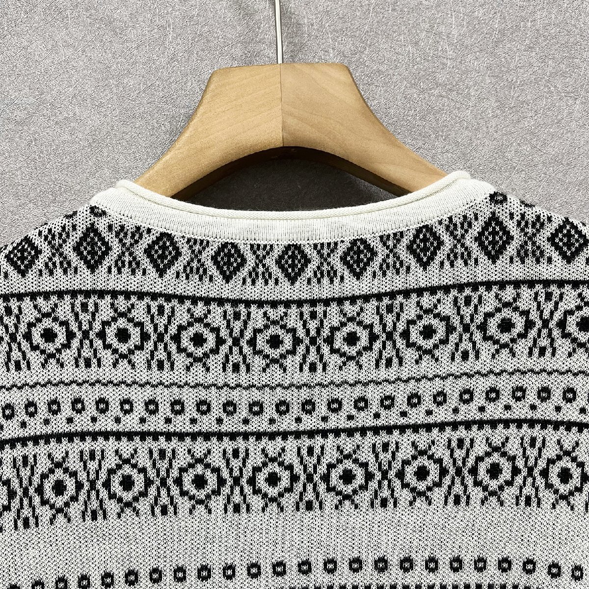 首元はクルーネックでスッキリ細見え度がアップし、顔周りを華奢に見せます。特徴的なデザインセンスで存在感のある総柄が、都会的でお洒落なスタイリッシュ感をよりカッコよく鮮明に強調してくれます。フィット感を出し、ルーズになりすぎないのも嬉しいポイント。