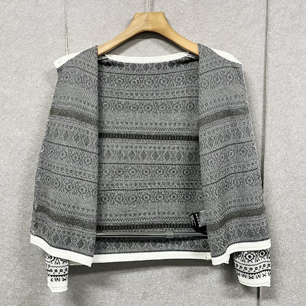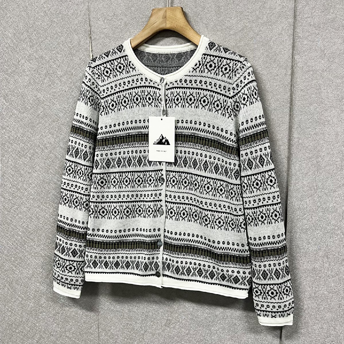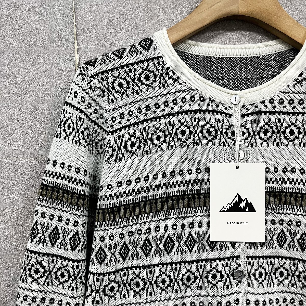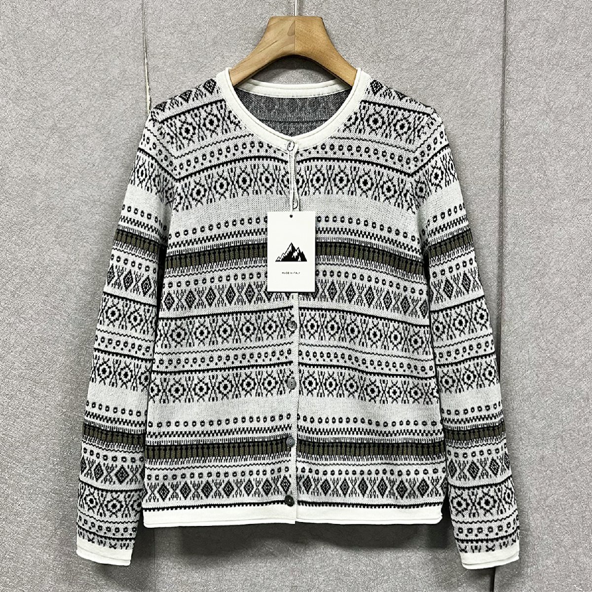 カーディガン イタリア製造 ウール混 ニット 柔らか ソフト 総柄 カジュアル セーター トップス 長袖 ジャケット 日常着 レディース SIZE:L