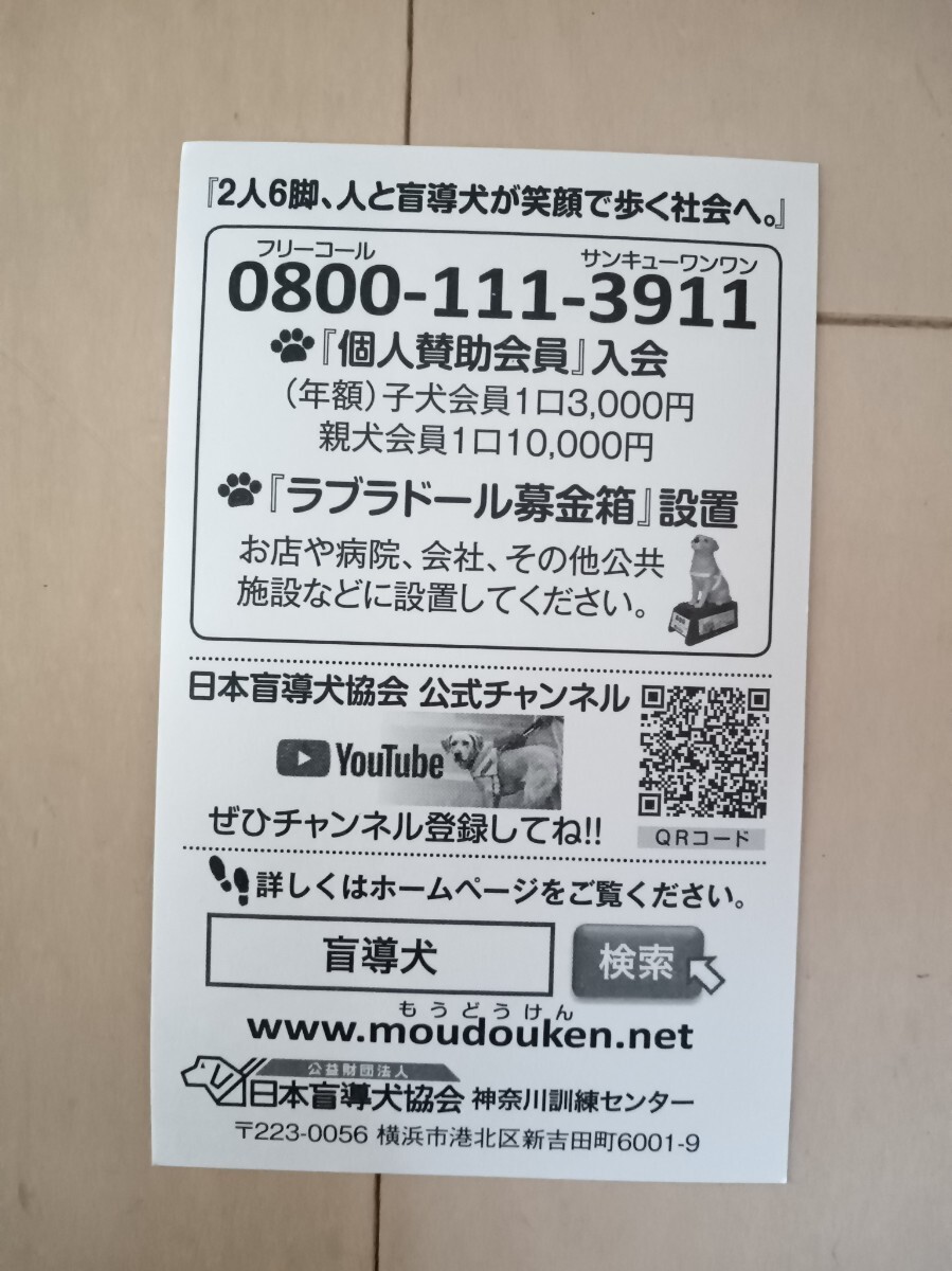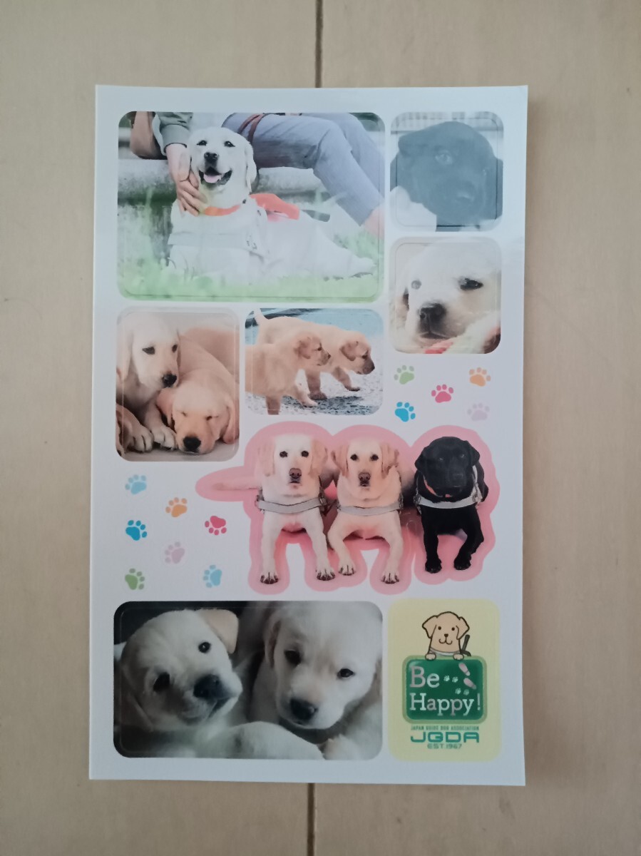 日本盲導犬協会のかわいい表情の犬のシールです。